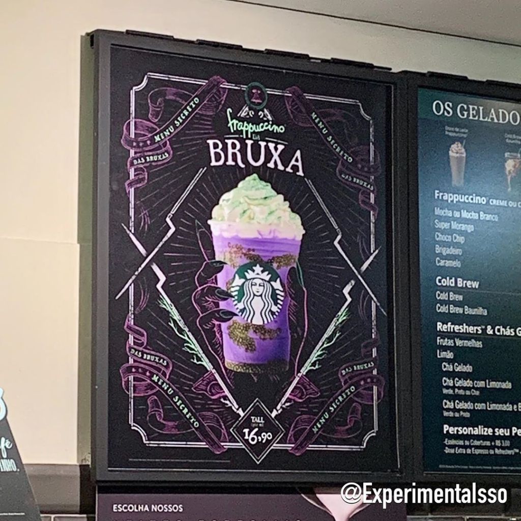 Sabor misterioso que parece com uva! 😅 Esse é o Frappuccino de Halloween que o @starbucksbrasil trouxe pra gente esse ano! A base da bebida é um creme de morango e uva com semente de chia! Essa edição especial fica disponível até dia 31 de outubro!