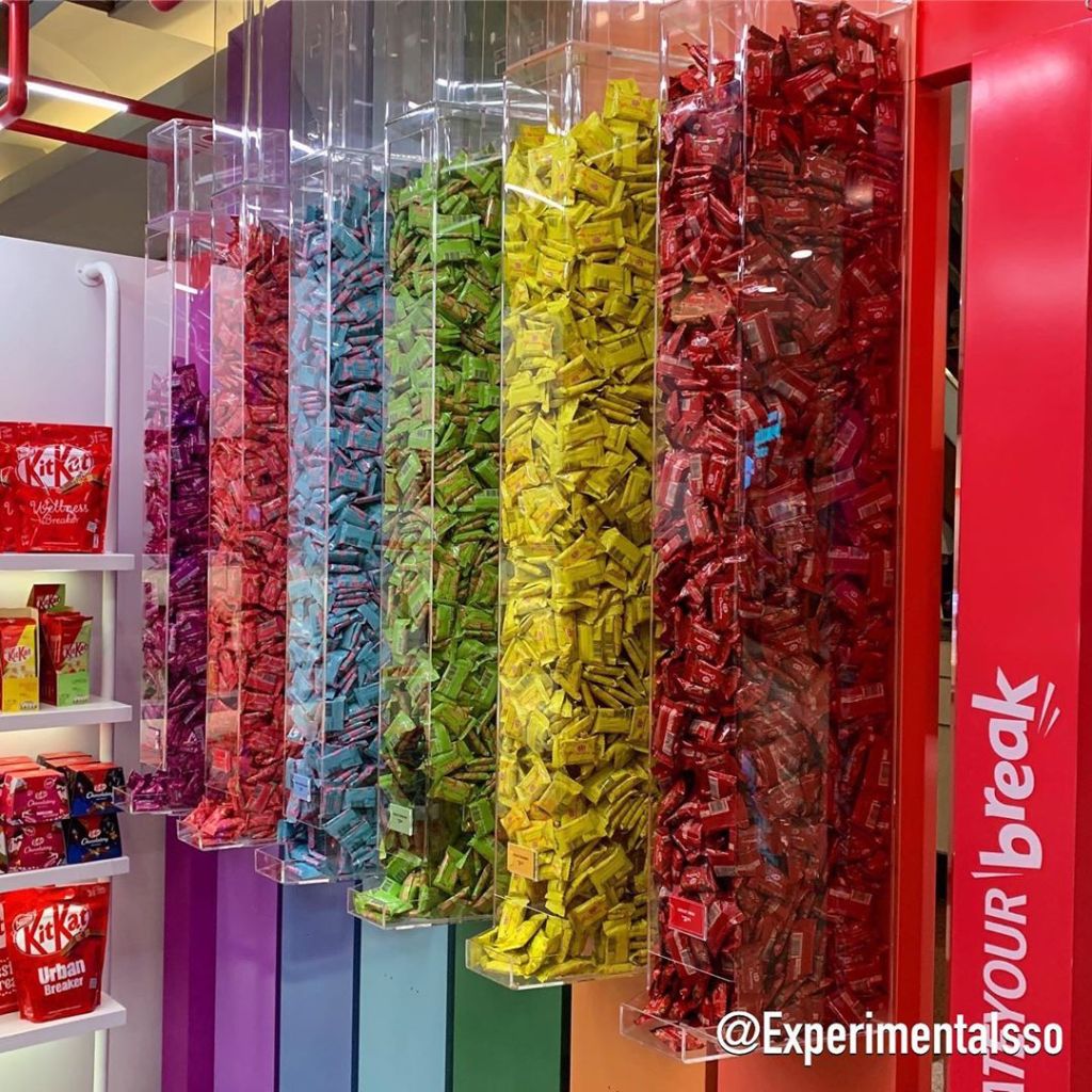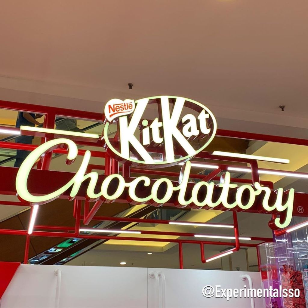 Neste final de semana aproveitamos nossa visita ao ChocoBot pra conhecer o novo KitKat Chocolatory! É um quiosque incrível no Shopping Morumbi que conta com banco de KitKat Gigante e sabores exóticos e importados de KitKat! Nos dispensers gigantes tem 6 sabores de KitKat diferentes: Framboesa, Banana, Pistache, Goiaba, Algodão-Doce e Ao Leite! A loja também oferece uma caixa exclusiva com 4 sabores Gringos: Maçã com Canela, Cookies and Cream, Cheesecake de Mirtilo e Cream Caramel! 😍 Você também pode adquirir os novos KitKat de 12 pedaços, aqueles com sabor de Fruta que já postamos aqui no @experimentaisso. Você também pode levar pra casa um pacotão de Mini KitKat e até mesmo uma caixa importada com os KitKat de Dubai que já mostramos aqui no Instagram! Essa loja é perfeita pra quem ama KitKat e também ama EXPERIMENTAR novos sabores!