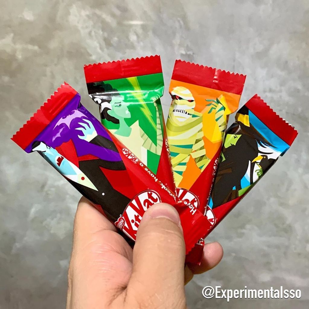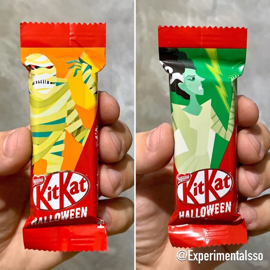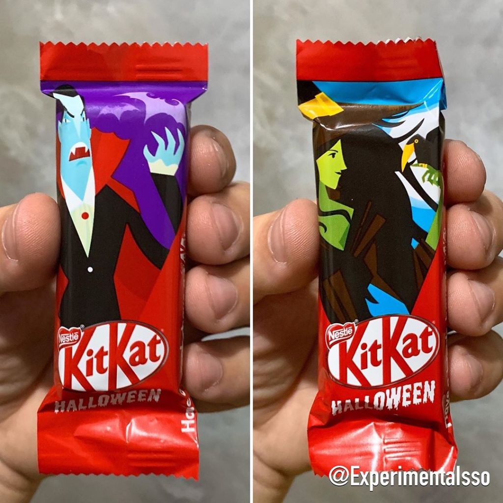 Mais um pacotão de doces pra esse HALLOWEEN! 😆 São 4 embalagens diferentes de Mini KitKat de chocolate ao leite! Bruxa, vampiro, múmia e “noiva do Frankenstein” 😅