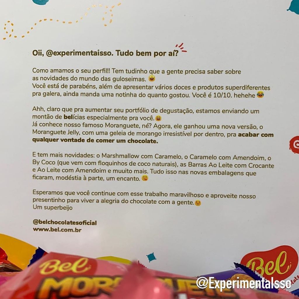 Hoje de manhã recebemos essa caixa incrível da BEL! Ela veio RECHEADA de Moranguetes e outros chocolates deliciosos! 😋 Um dos chocolates que veio na caixa é o novo Moranguete Jelly que ainda não experimentamos! Essa vai ser a nossa oportunidade! 😁 Vamos experimentar tudo que tem na caixa e depois contamos pra você como é!