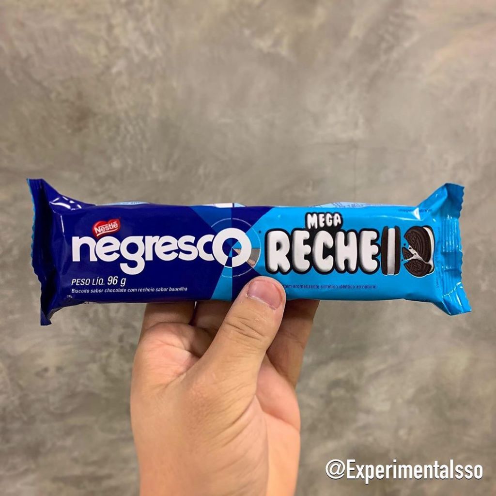Hoje é um dia marcante na história dos biscoitos recheados brasileiros! 😂 A Nestlé ficou maluca e lançou uma versão de Negresco com Mega Recheio! 👍 E realmente vem praticamente o dobro de recheio do que a versão “regular”! Infelizmente vem menos biscoitos que o pacote tradicional, mas já estamos muito contentes com essa novidade! .