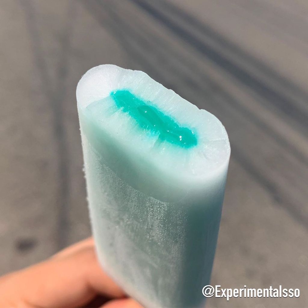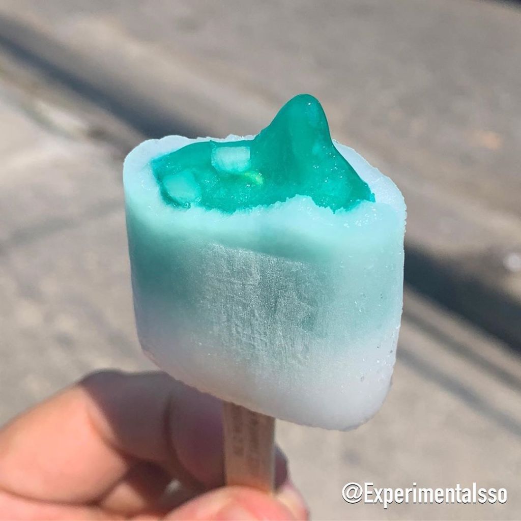 Parece estranho, mas até que é gostoso! Esse picolé tem sabor de fruta na parte de fora e um recheio cremoso que parece quase gelatina. Os sabor é surpresa até você abrir a embalagem, pode ser Limão, Uva ou Morango.