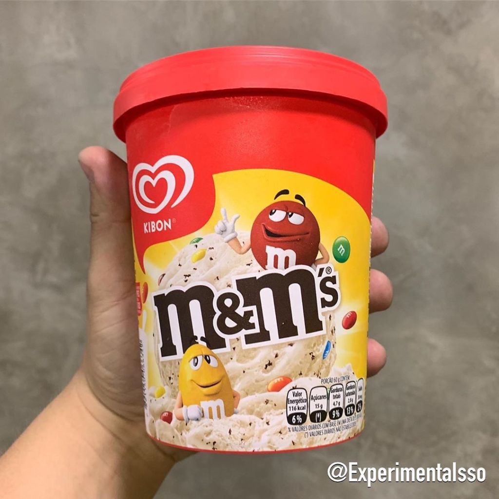 Esse mês a Kibon nos trouxe um monte de novidades! E além do Cornetto de M&M’s temos o Sorvete de M&M’s de pote! 😆 É basicamente um sorvete de flocos com adição de M&M’s misturado na “massa”. 😋 Infelizmente esperávamos um pouquinho mais dessa versão do sorvete, já que o Cornetto de M&M’s acabou ficando INCRÍVEL! Acho que faltou a calda de chocolate do Cornetto…😁