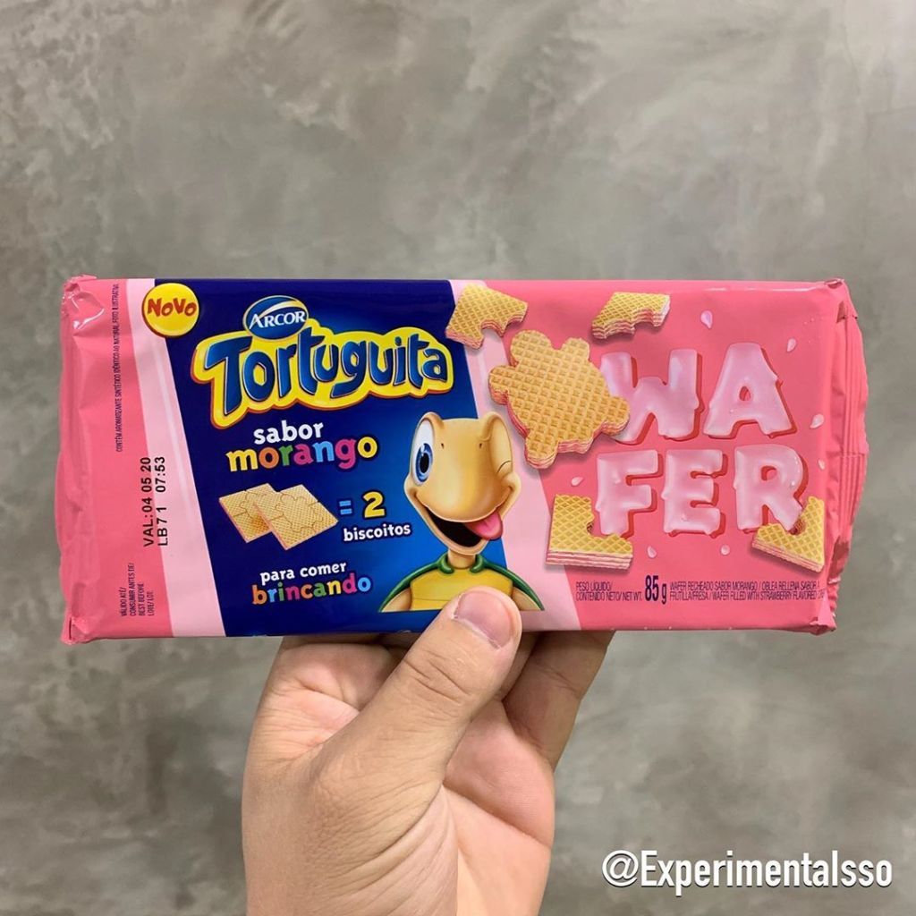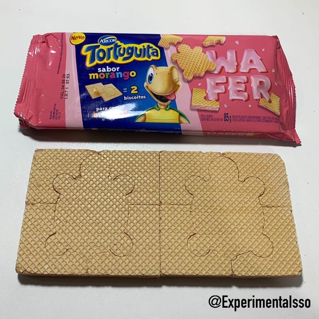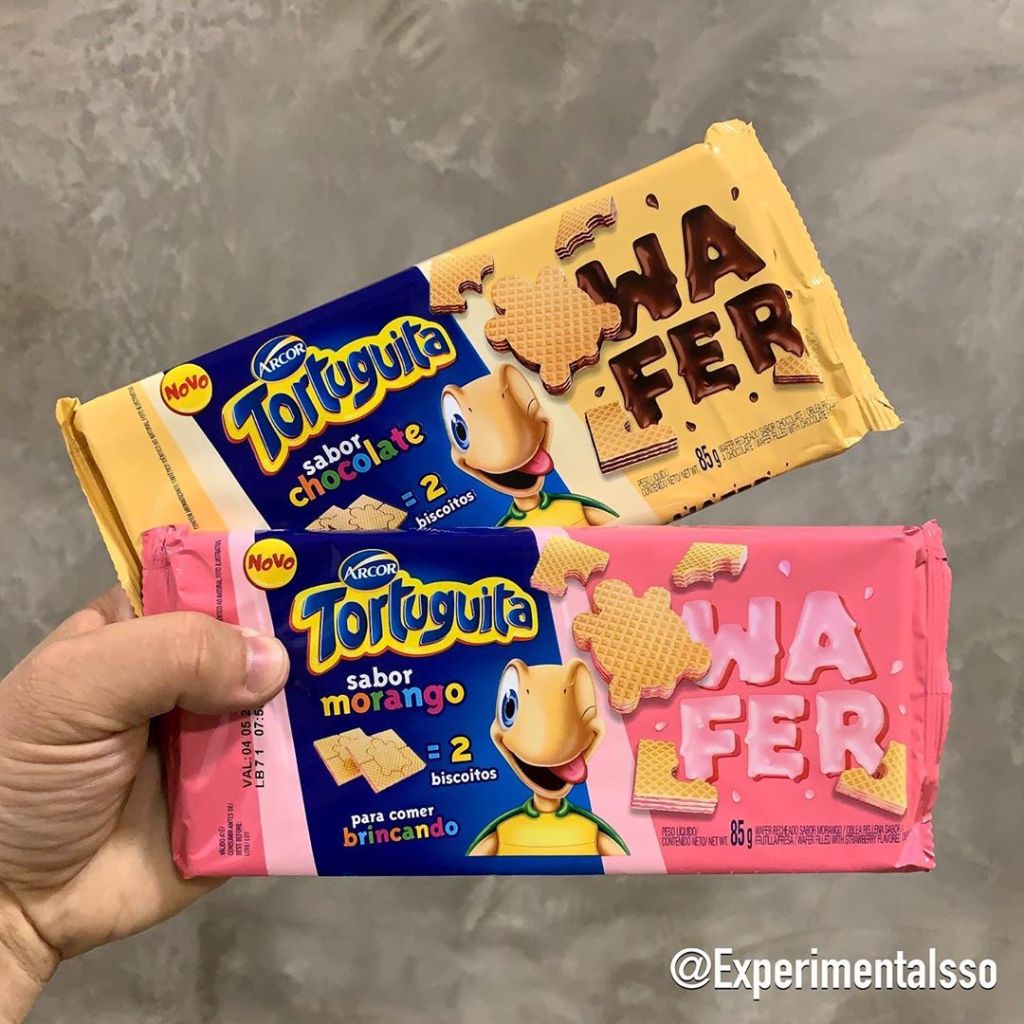 A Arcor não para de investir no que a gente gosta! E agora temos esse wafer incrível de Tortuguita! 😊 O sabor dos Wafer são bem simples, Morango e Chocolate. A parte divertida desse biscoito realmente é formato fora do padrão e que divide os biscoitos como se fossem um quebra cabeças, sendo que isso inclui as duas peças centrais do pacote que tem um formato de Tortuguita! 😁