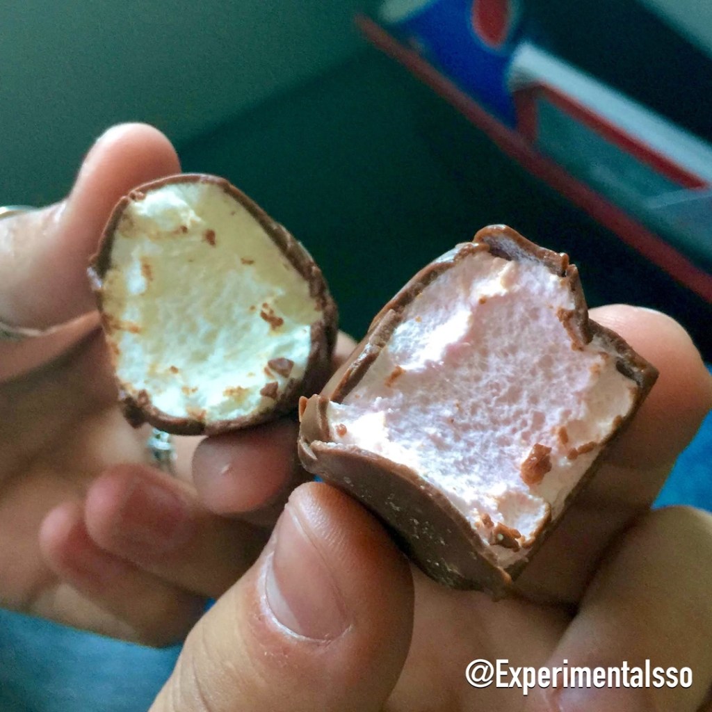 Encontramos esses marshmallows da Haribo numa “vending machine” no aeroporto de Paris! São marshmallows de baunilha e de morango cobertos com chocolate ao leite! 😍 Nós amamos! O chocolate derretia um pouquinho quando encostava nos dedos mas ainda assim eram perfeitos! Pode trazer essa delícia pra cá @haribobr ! 😁 .