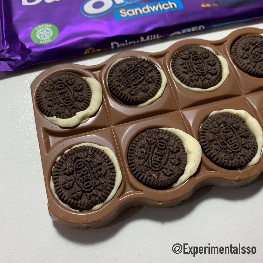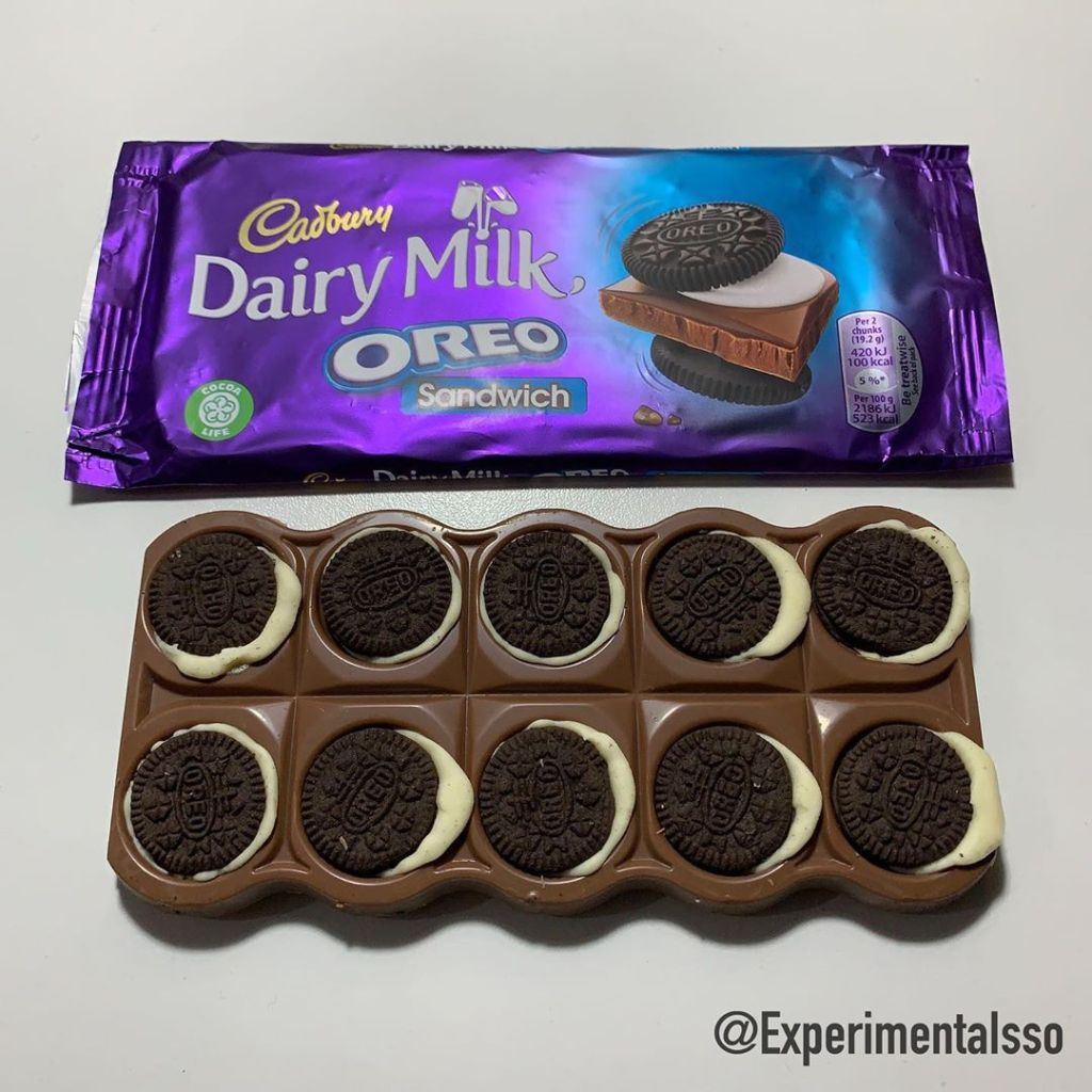 Depois do sucesso das barras de chocolate com M&M’s nós trouxemos para vocês as barras de chocolate com Oreo! 😍 Muito além das barras importadas da Milka que temos por aqui no Brasil existem 4 barras produzidas pela Cadbury no Reino Unido! Essa aqui é a que mais gostamos, a versão “Sanduiche”. Essa barra tem 10 biscoitos Oreo com recheio de chocolate branco com baunilha. Os biscoitos ficam com a barra de chocolate “dentro” delas, por isso o nome. Como estamos falando de Oreo, chocolate e Cadbury já da pra imaginar que todas as barras são uma delicia! Mas é claro que temos as nossa preferida, essa aqui no caso, a barra “Sandwich”! Ela é a melhor! É quase como se estivéssemos comendo Oreo com recheio de Kinder Ovo! 😍
