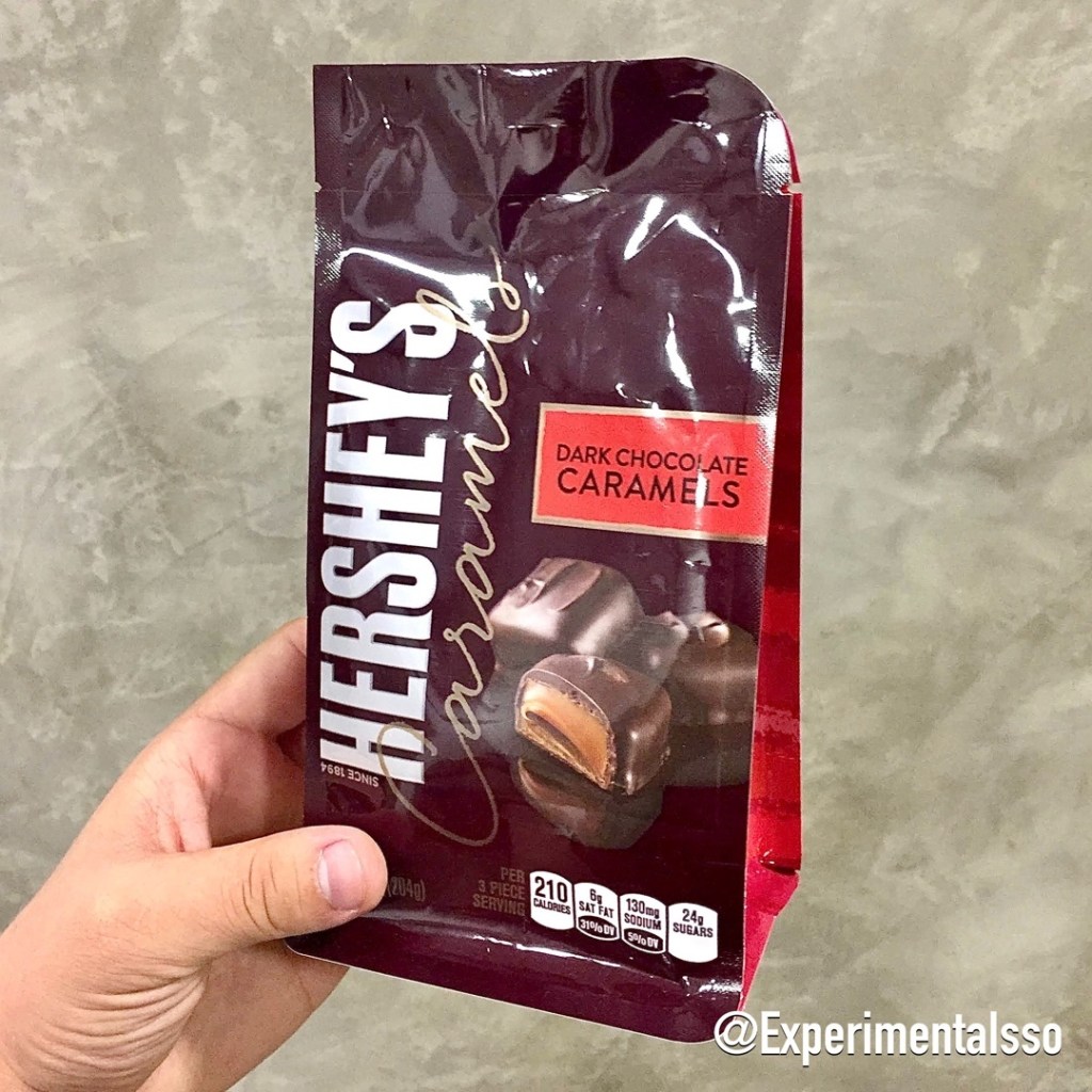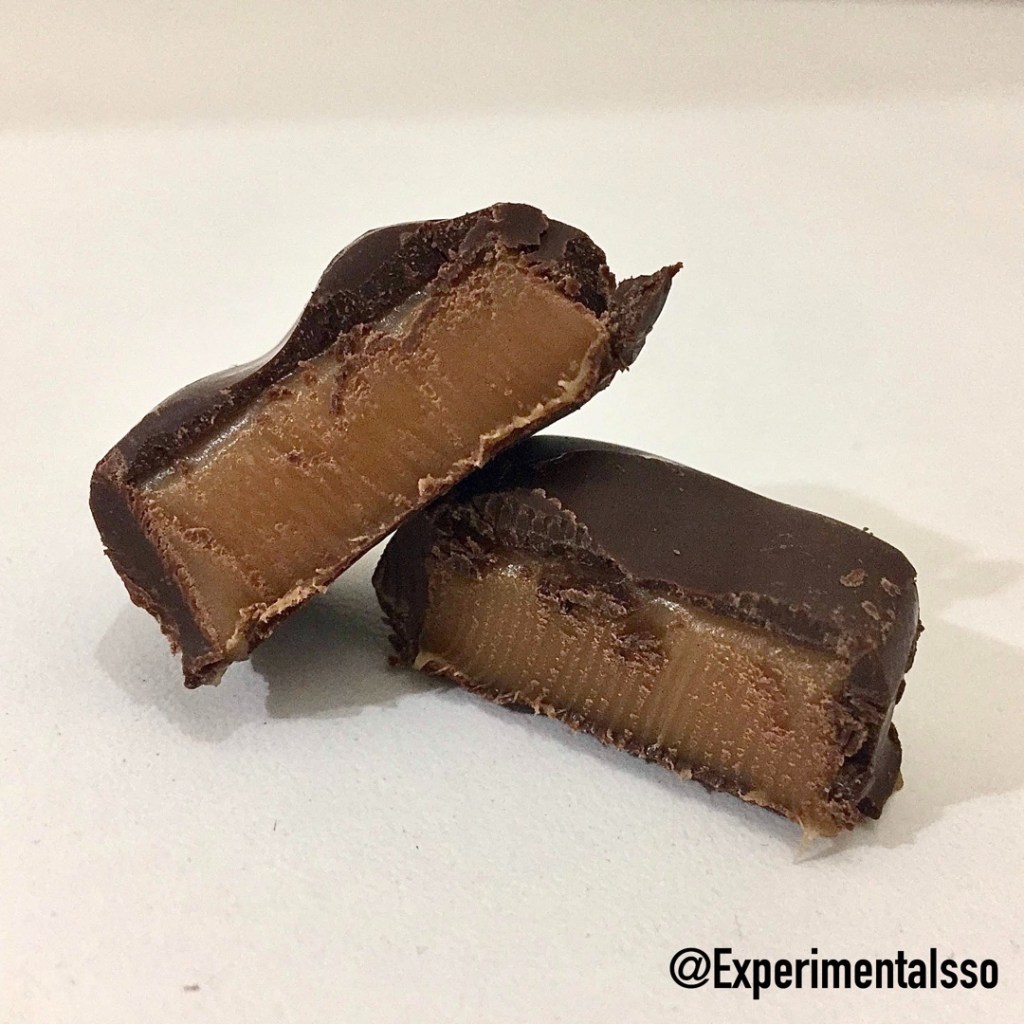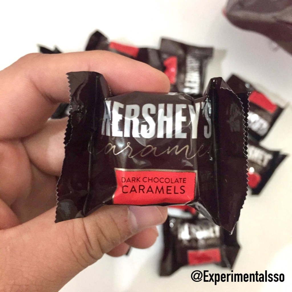 Tem muita variedade de Hershey’s “lá fora”! Isso aqui são caramelos cobertos com chocolate amargo! São incríveis! O doce do caramelo combina perfeitamente com o chocolate amargo! Esse doce é americano mas você consegue encontrar em algumas casas de importados aqui no Brasil! O problema é o preço…namoramos esse doce nas lojas durante muito tempo até ter uma promoção pela metade do preço! E ainda tava caro! 😂 Mas valeu a pena! 👌