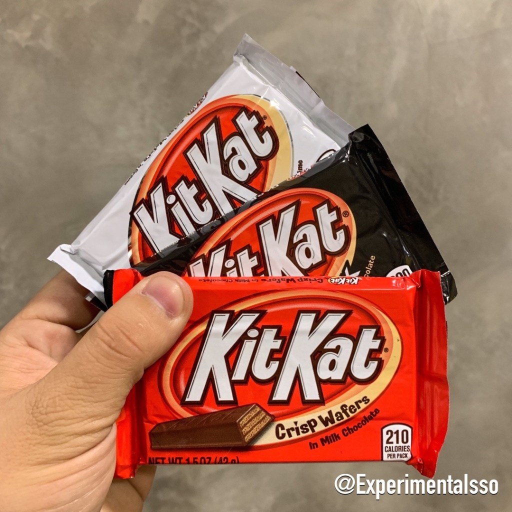 Já falamos muitas vezes por aqui, mas pra quem ainda não entendeu vamos mostrar dessa vez! O KitKat nos Estados Unidos é feito pela Hershey’s e não pela Nestlé! 😱 Isso é resultado de um pacto dos anos 70 com a empresa que criou o KitKat nos anos 30 e foi comprada pela Nestlé nos anos 80…Mas isso influencia no sabor do nosso querido KitKat? 🤔 Claro que sim! Apesar de ter que seguir um padrão básico de formato, o chocolate é diferente. Pra quem já fez a comparação dos chocolates da Hershey’s com Nestlé por aqui, pode ter uma leve noção de como é essa diferença de sabor e textura. O que nos chama mais atenção é que o KitKat dos EUA não é tão doce e o chocolate da cobertura não tem aquela “cremosidade” que o da Nestlé tem! 😌 Mas é bom ou não é? 😪 É claro que sim! Ainda é KitKat! 😂