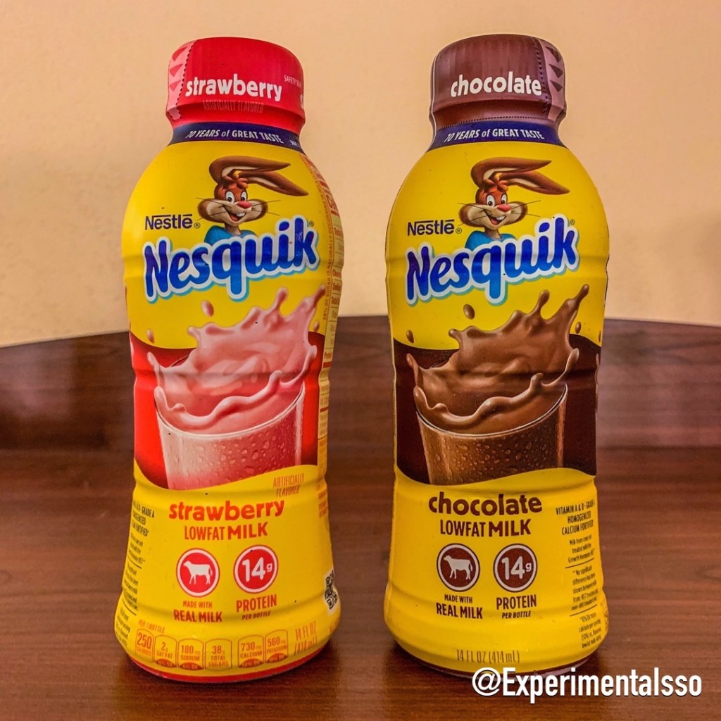Experimentamos essas garrafinhas de Nesquik pronto lá nos EUA. 😋 Foi nostálgico! 😅 A gente adora o Nesquik de morango, mas sentimos uma falta do Nesquik de chocolate…😢Sem contar com os chocolates e produtos derivados…Era tudo muito gostoso…🤗