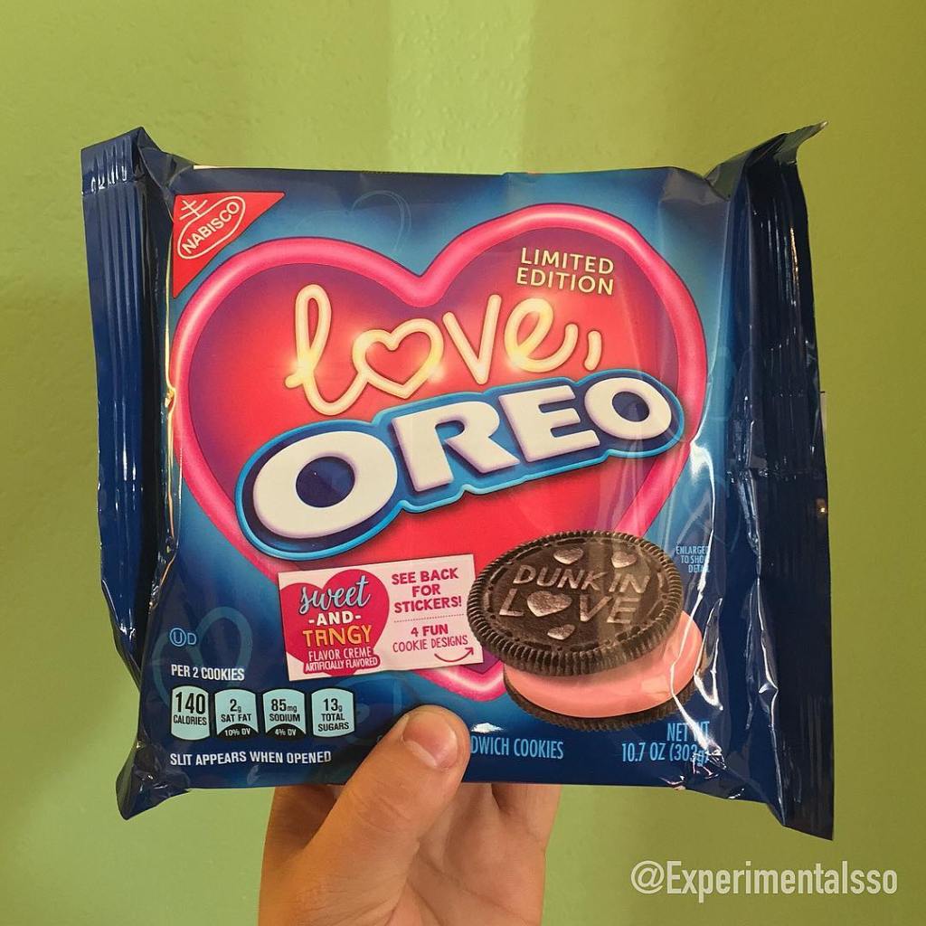 Depois de quase dois anos estou de volta ao paraíso das Oreos! E a galera já está se preparando pros próximos feriados por aqui! Na primeira Target que entrei, já encontrei uma seção dedicada ao Valentines Day e a Páscoa! (Sim a galera já está pensando nisso por aqui) Nessa seção já da para encontrar muitos doces personalizados e edições especiais pra essas datas! Um dos primeiros itens que queria mostrar pra vocês é essa Oreo! Não entendi direito qual é a proposta do sabor, por que Morango não é com certeza! Mas o que chama atenção são os desenhos comemorativos que tem na face da bolacha ao invés do clássico logo da Oreo! Alem das mensagens no biscoito atrás da embalagem vem 3 stickers personalizados pra você distribuir por aí! 😅 Nota: 7/10! .