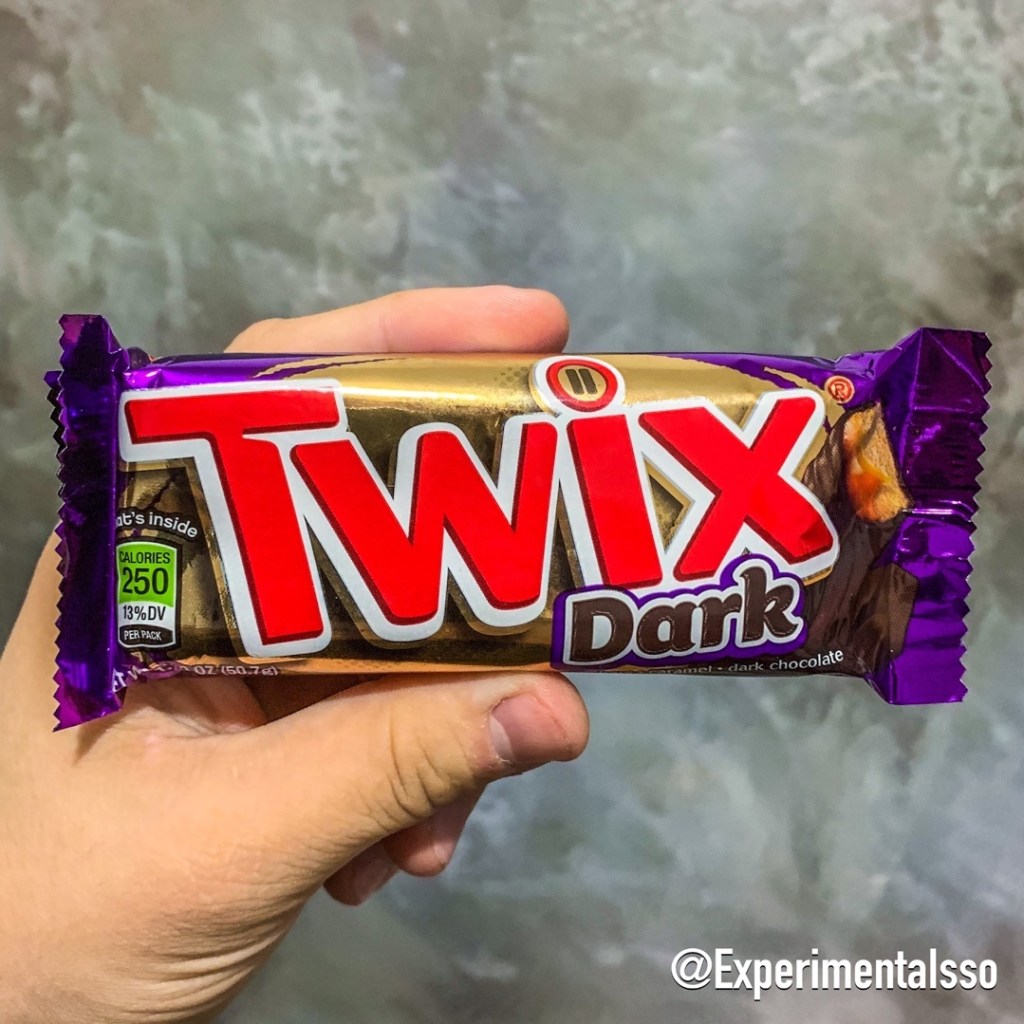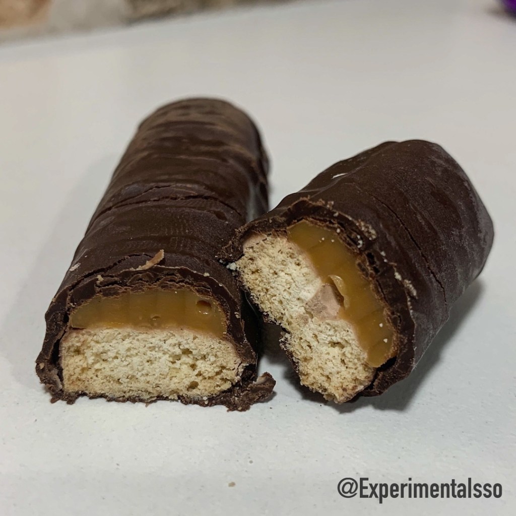 Quem gosta de chocolate meio amargo vai adorar esse aqui! O Twix Dark é basicamente um Twix tradicional com a diferença do chocolate da cobertura ser chocolate amargo e não “ao leite”. Eu particularmente não gosto desse tipo de chocolate, mas Ela adorou. 😉 O chocolate ficou um pouquinho “branco” porque guardamos ele na geladeira…😢 Mas o biscoito e o caramelo continuavam perfeitos!