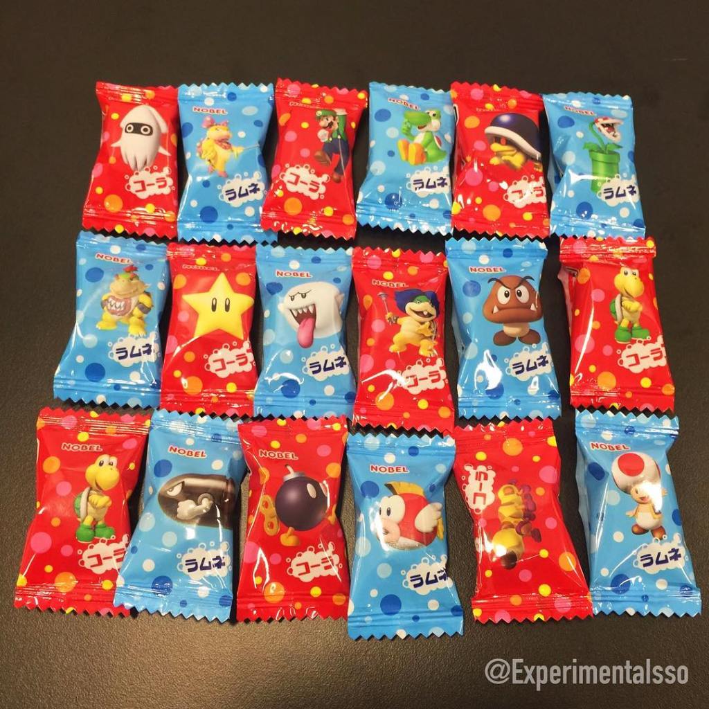 Essa é uma variação da bala de gelatina do Mario que postamos em junho! Essa vem em apenas um formato, moedinhas com o rosto do Mario! Vem 20 balinhas embaladas individualmente e cada pacotinho tem um personagem diferente na face! O sabor da bala também é melhor nessa versão, apesar de dizer que é o mesmo: “Ramune Soda e Cola”! 😅 Mas pra você que gosta de video game, Nintendo, Mario, e todos os persongens do universo dele, vale a pena adquirir um pacote desses! Nota: 8/10! Pagamos R$7,50 no mercado TOWA no bairro Liberdade aqui em SP!