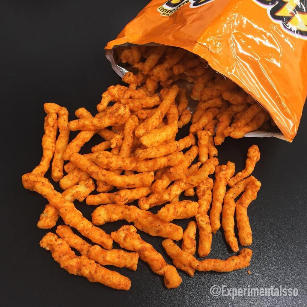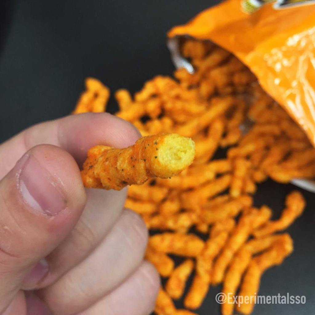 Pra quem viu nosso último post viu a aparência e nosso relato sobre comer o Cheetos Flamin Hot e mal sentir algum sabor por ser muito picante! Esse aqui é bem diferente. Apesar de ser extremamente picante, você consegue sentir perfeitamente o sabor proposto, que é uma mistura de cheddar com jalapeno e alguma temperinhos mais! É uma delícia, muito saboroso mesmo e é perfeito pra quem quer começar no mundo dos salgadinhos “ardidos”! Essa versão “export” foi comprada em Abu Dhabi, mesmo caso do Flamin Hot…😢 Quando chegará aqui?