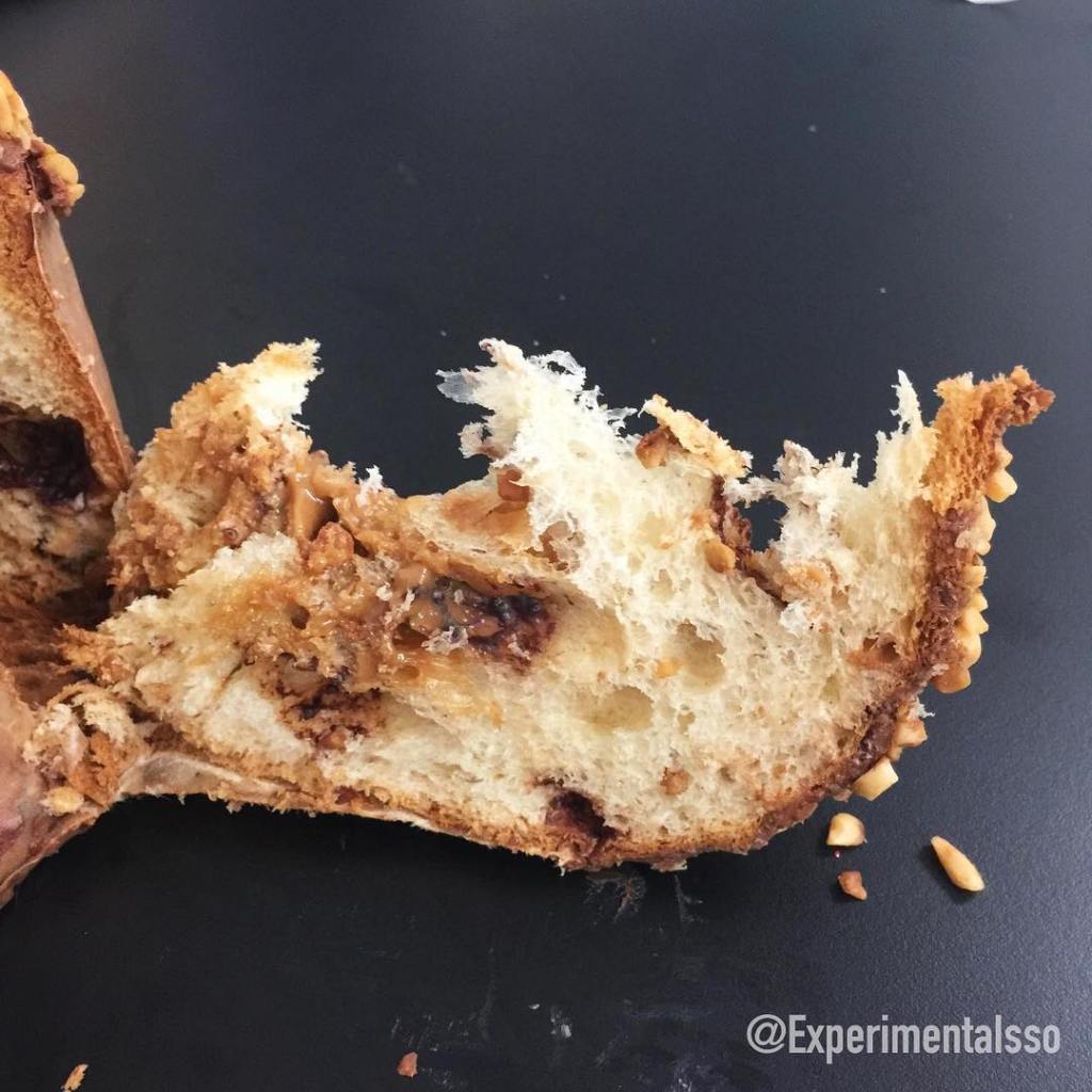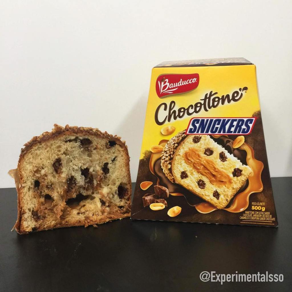 Esse chocottone de Snickers já está rolando há mais de um mês pelas prateleiras das lojas, mas não havíamos comprado até agora por causa do preço, que estava na média de 29 reais. Contudo, encontrei-o num outlet de beira de estrada aqui em São Paulo sendo vendido por 20 reais! 👍 Entendi o recado e comprei. Infelizmente além de não vir quase nada de recheio (como podem ver mas fotos) o sabor dele estava muito forte, como se tivessem errado na quantidade de “essência de panetone”…se tivesse pago 30 reais teria ficado muito triste, principalmente porque pagamos 15 reais nos pequenos de recheio cremoso de doce de leite e chocolate no inicio do mês que estavam muuuito mais gostosos que esses e tinha o triplo de recheio! Nota: 7/10! Comprado na loja Pirueta Premium no Outlet Fernão Dias!