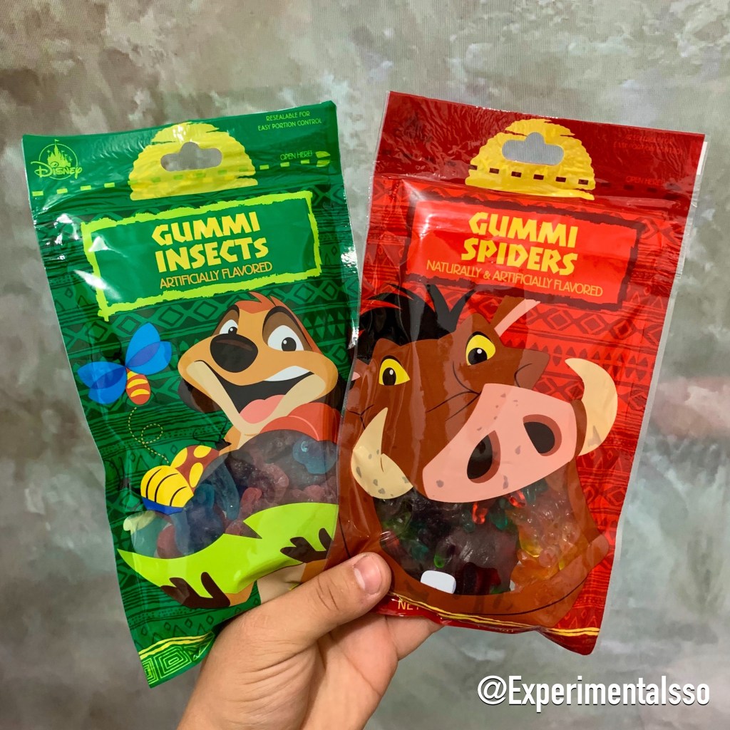 Esse talvez seja um dos doces mais divertidos que já experimentamos! Depois de 26 anos finalmente conseguimos entender o que Timão e Pumba queriam dizer…As balinhas de gelatina do pacote verde tem formatos de insetos e são meio durinhas por fora e bem macias por dento, chegam quase a ser “cremosas”! As do pacote vermelho são um pouco mais tradicionais em termos de textura, mas todas as balinhas desse pacote tem formatos de aranhas! As balas dos dois pacotes tem sabores de frutas variadas e são muuito gostosas! Se um dia você tiver a oportunidade de ir a Disney, não deixe de experimentar!