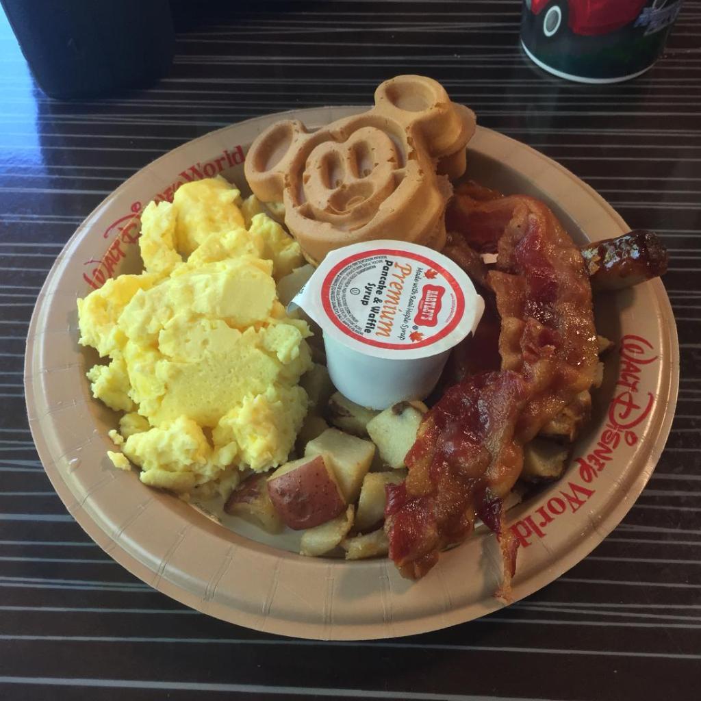 Café da manhã completo no hotel da disney! Ovos mexidos, batatas, bacon, linguicinha, e waffle com mapple syrup! Tudo muito gostoso! Nota: 8/10 #ExperimentaIsso #Waffles #Bacon #Crispy #MapleSyrup #Disney #WaltDisney #WaltDisneyWorld #DisneyWorld #BreakFast #cafédamanhã #cafedamanha #USA #Eua #2017
