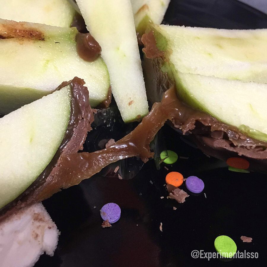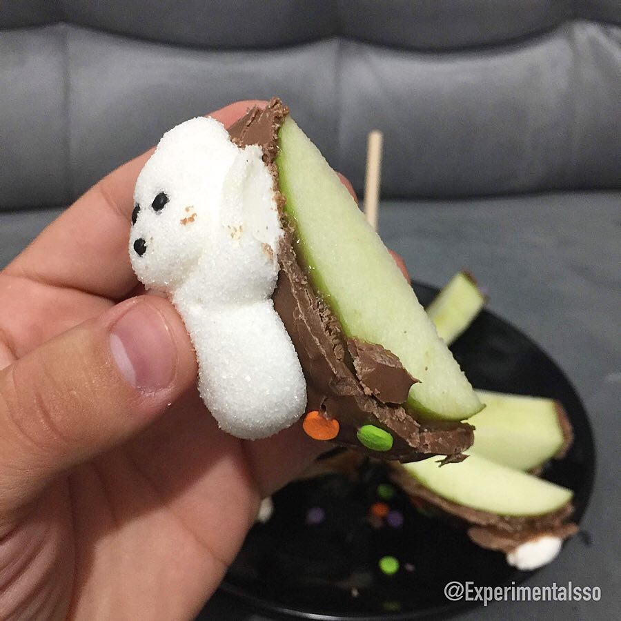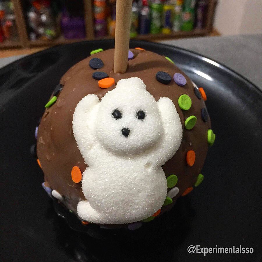 👻💀 Não deu nem tempo de postar ontem! Essas são as maçãs decoradas da @caramapple que compramos pro Halloween! 🍏🎃 Esse ano eles colocaram até um marshmallow com formato de fantasma na versão clássica de caramelo com chocolate que é a minha preferida! Ficou incrível! Já falamos sobre os produtos da Caramapple ano passado, no Halloween também, mas pra quem não sabe, essa é uma pequena loja de SP que reproduz com perfeição essa típica sobremesa americana que tem como base uma maçã verde coberta com uma espessa camada de caramelo! Tipo aquelas da Disney…E tem varias opções de coberturas, de chocolate ao leite a “Reeses Pieces”! A que aparece na foto a direita é de chocolate meio amargo, pra quem gosta de um sabor mais “intenso” ☺️💚 Nota: 9/10!