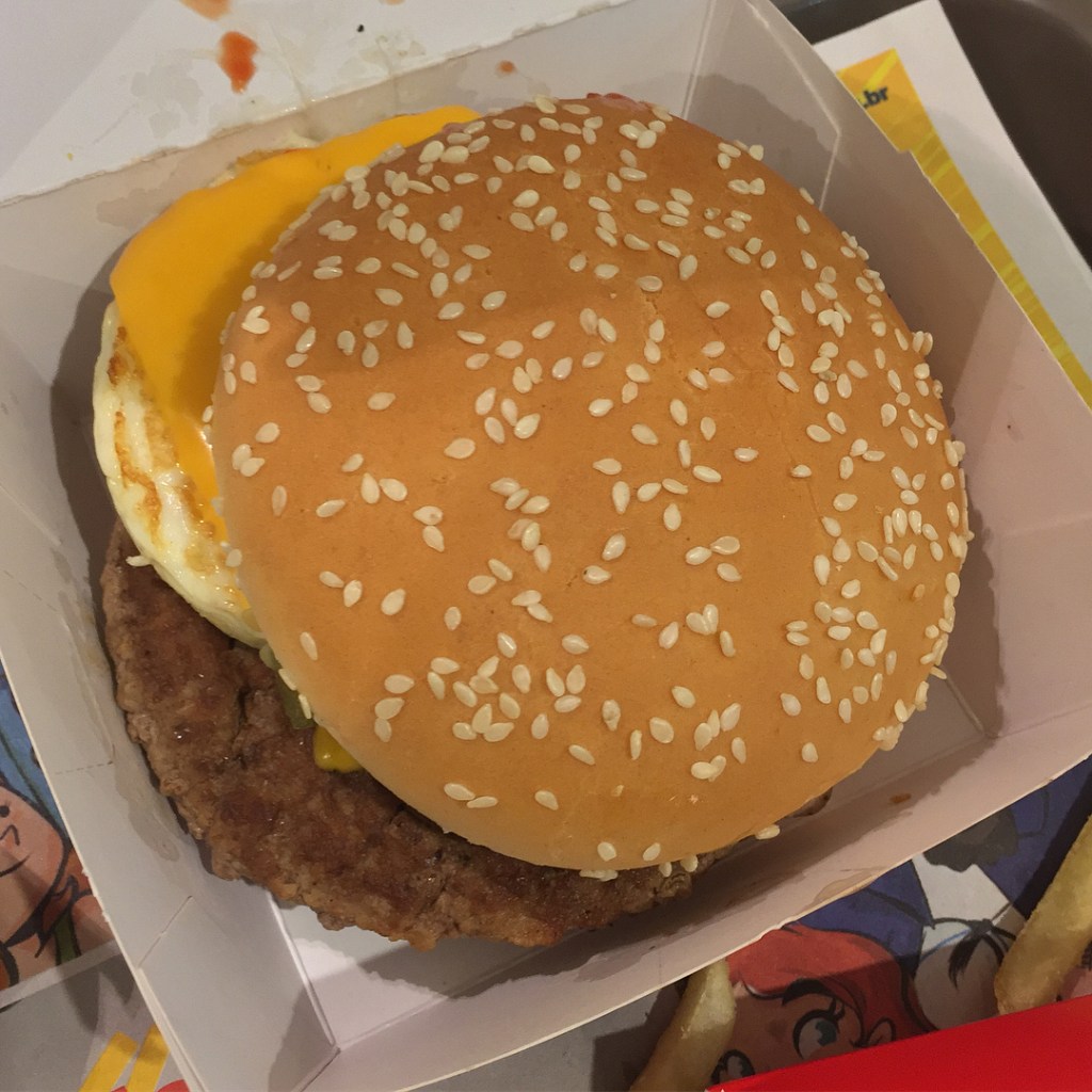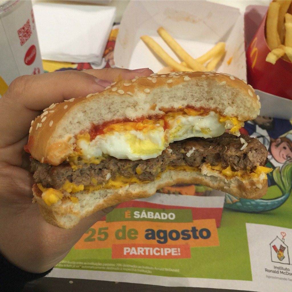 Provamos o novo Egg Quarterão! Apesar de sofrer do mesmo problema de apresentação e montagem da maioria dos sanduíches de praticamente qualquer rede de fast food que temos por aqui, com uma “ajeitadinha” conseguimos colocar tudo no seu devido lugar! 😉👌 Sinceramente nós do Experimenta Isso adoramos o resultado e achamos que ficou muito gostoso a combinação! Pedimos 2 combos do Egg Quarterão e notamos a diferença entre a preparação do ovo, um estava mais durinho (e estava bom) e um estava com a gema molinha (e estava incrível! Mas acho que não vai acontecer de novo 😂) Pra quem não se satisfaz com o sanduíche com uma carne, de cara você já pode pedir até a versão tripla dessa nova versão! Nota final: 9/10! #ExperimentaIsso #mcdonalds #egg #ovo #hamburger #hamburguer #cheesegurger #quarterao #cheese #queijo #novidade #comida #almoco #domingo #novo