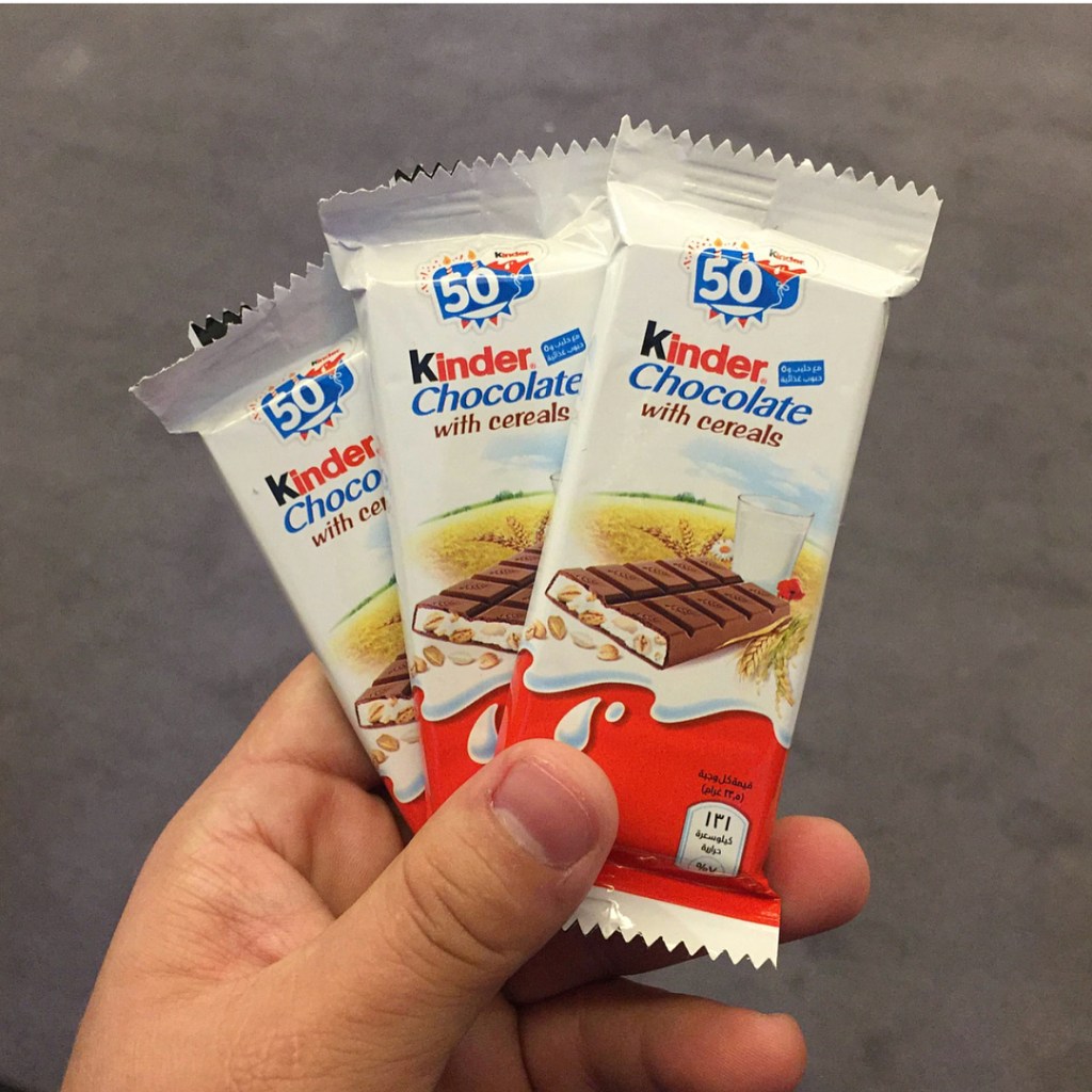 ❤️🙏❤️ Barrinhas de Kinder com Cereais! Nota: 8/10 #ExperimentaIsso#Chocolate#Kinder#KinderOvo#ferrero#Dubai#Candy#Milk#leite#cereais#cereal#sobremesa#delicia#gostoso#novidade#2018#importado#uae#emirates