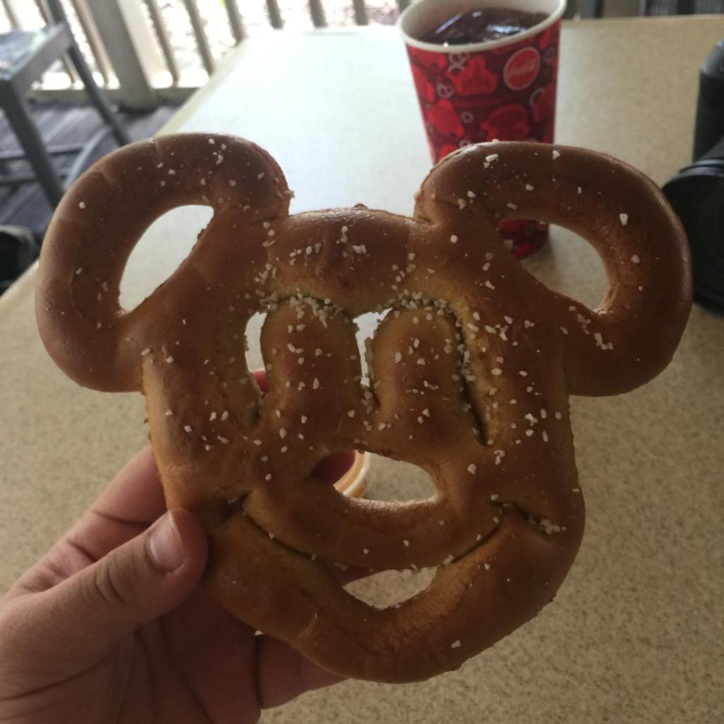 Pretzel no formato do Mickey! 😊 Um clássico dos parques da Disney! Ele vem com um molho de cheddar num copinho (se olhar bem através do nariz da pra ver a ponta do copinho). Nota: 9/10 (por que eu gosto muito de pretzels) #ExperimentaIsso #Pretzel #Disney #Mickey #Eua #usa #america #orlando #viagem #travel #trip #magickingdom #orlando #instafood #food #comida #snack #lanche #salty #2017 #delicia #breakfast #cafedamanha #domingo #sunday