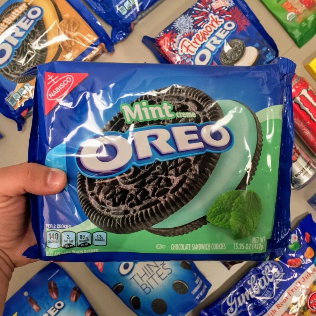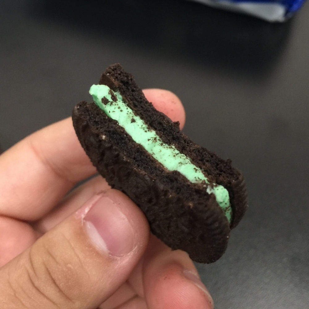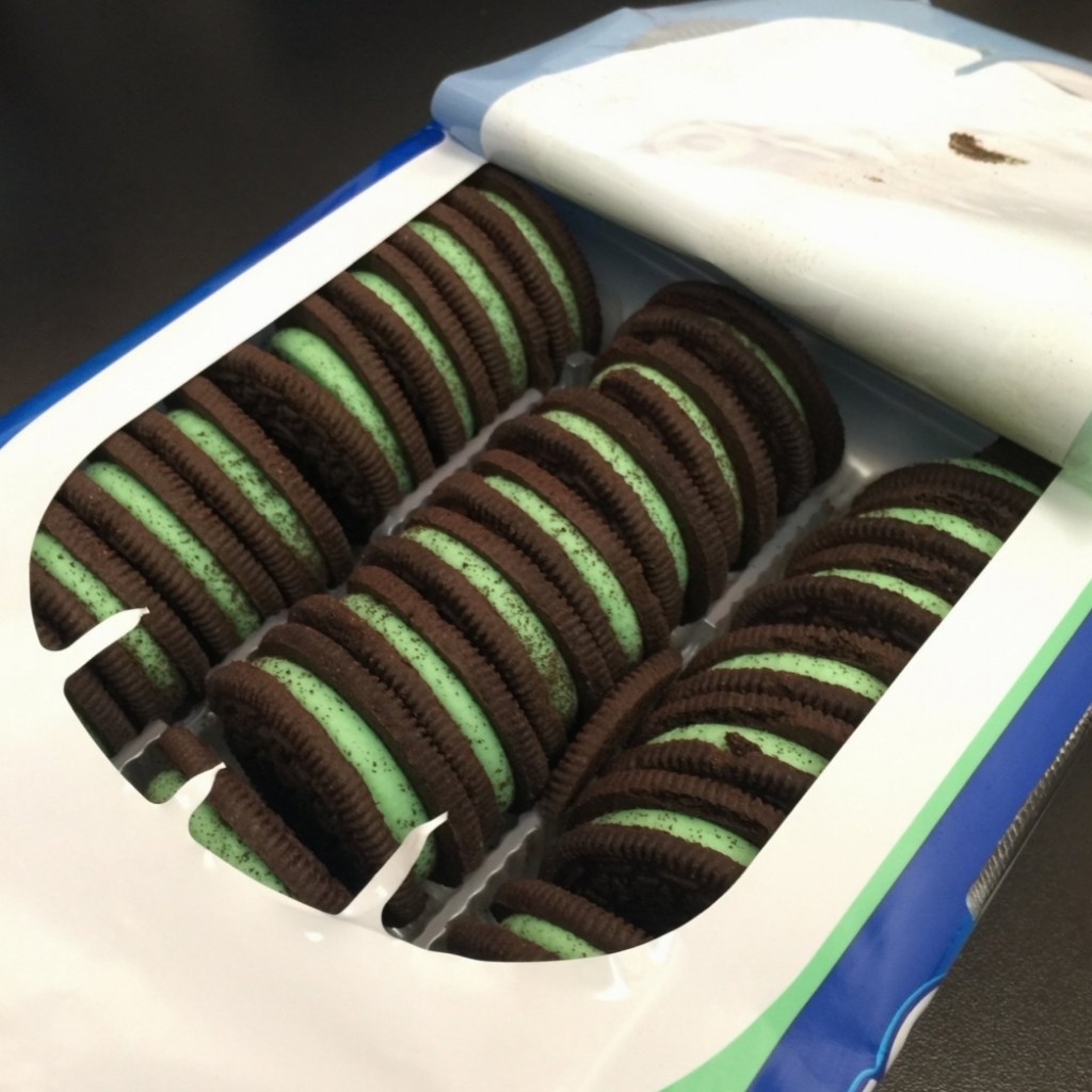 Pros amantes de Oreo! Pros amantes de Menta! Oreo de Menta! Infelizmente ainda não temos no Brasil, essa veio direto dos EUA! A bolacha é praticamente a mesma, o recheio é que muda, ao invés do creme branco de baunilha, é um creme verde mentolado! E como qualquer Oreo de lá, vem muito mais recheada do que as que temos aqui no Brasil! Nota: 9/10 #ExperimentaIsso #Oreo