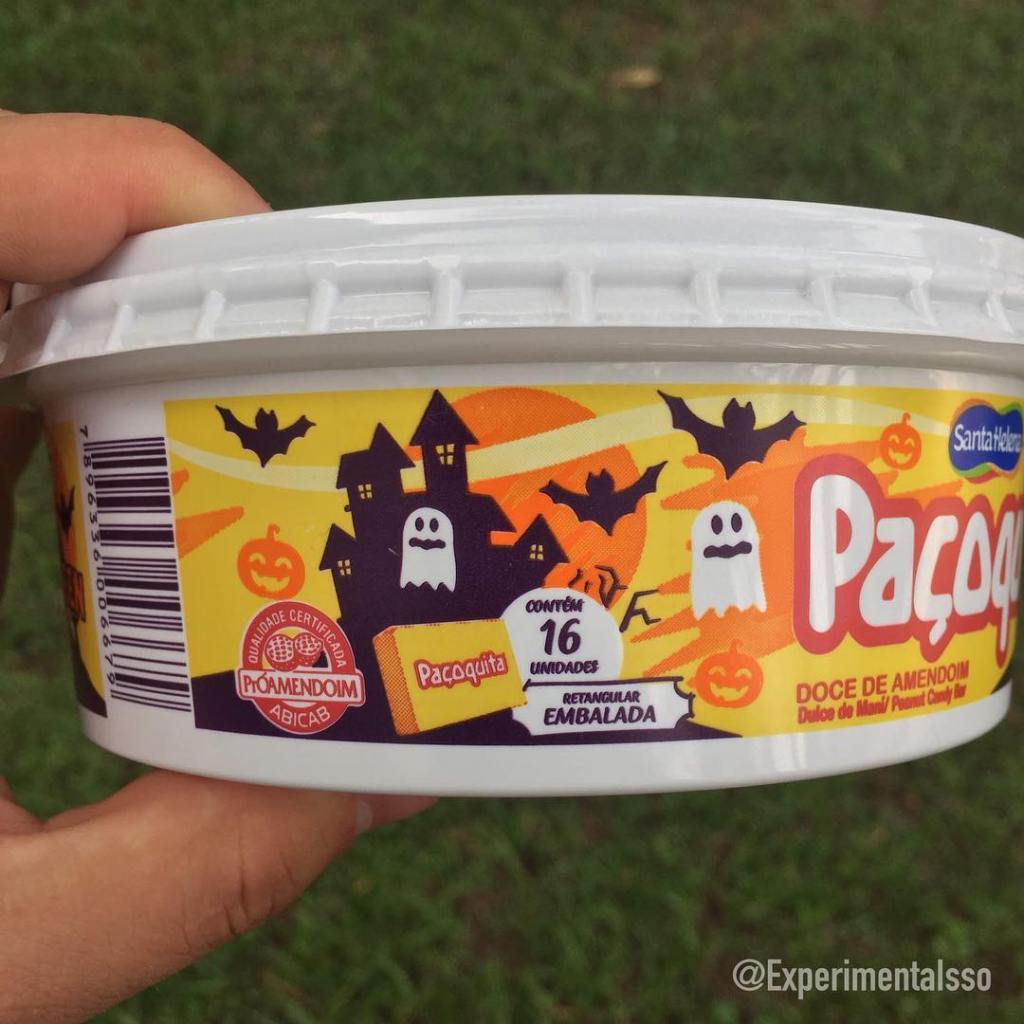 👻🎃💀🕸🦇 Happy Halloween!!! 😁❤️💛Todo mundo já sabe que AMAMOS o Halloween e adoramos experimentar os docinhos que são lançados nessa época! Mas o que acho mais interessante é ver as embalagens que as empresas fazem pros doces que já conhecemos e adoramos, pra ficarem com a cara certa e entrar no clima da comemoração! E esse ano a Paçoquita lançou uma embalagem ESPECIALÍSSIMA! Além dos desenhos temática estampados por todo potinho, a embalagem também se transforma em uma aplicação de Realidade Aumentada quando combinada com o app Zappar! Postamos um videozinho depois das fotos, deslize para a direita para dar uma olhada! Ah! E a nota da Paçoquita, já que nunca postamos a versão original aqui…NOTA 10! 💛💛💛💛💛💛💛 Local da compra: Emporium São Paulo – Moema, São Paulo.
