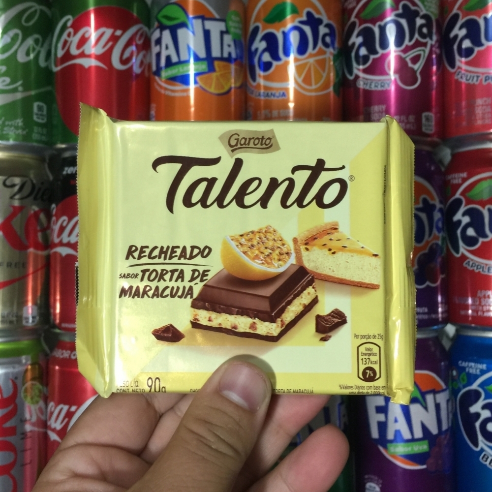 Para finalizar, Talento Recheado de Torta de Maracujá! Pros amantes da fruta é realmente uma dádiva! Tem um gosto refrescante, um pouco azedinho e não é muito doce! Nota: 9/10 #ExperimentaIsso #Garoto #Talento #Chocolate #Maracuja #Passionfruit #ChocolateBar #CandyBar #Candy #Sweet #Doce #Delicia #Gordice #Sobremesa #recheado #2018 #Brasil #Brazil #2017 #Nestle
