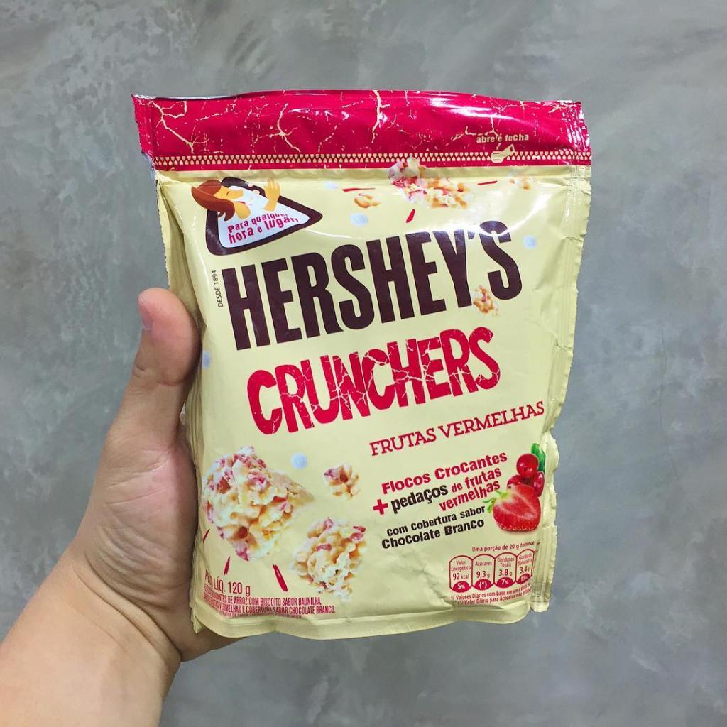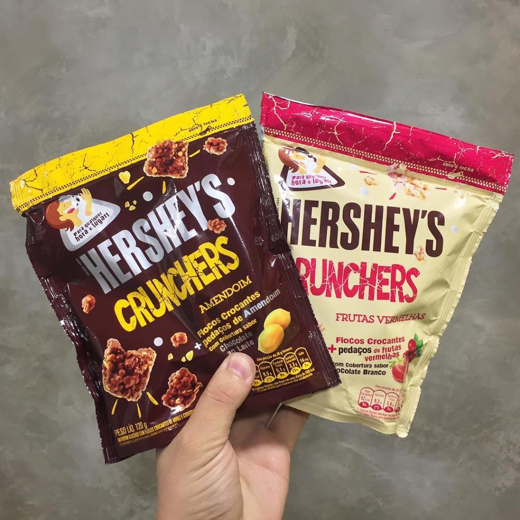 Hershey’s Crunchers! Finalmente saiu a versão nacional dos CRUNCHERS! Temos duas versões, a primeira são flocos crocantes com chocolate ao leite e pedaços de amendoim, e a segunda são flocos crocantes com chocolate branco e pedaços de frutas vermelhas! O Cruncher de chocolate ficou parecido com um pé de moleque crocante, nota: 7/10. O cruncher de frutas vermelhas ficou meio estranho, tem um azedinho das frutas vermelhas, mas nada que de vontade de repetir, nota: 6/10. #ExperimentaIsso #Chocolate #amendoim #peanut #whitechocolate #hersheys #chocolatebranco #doce #sobremesa #gostoso #snack #crocante #frutas #fruit #frutasvermelhas #brasil #2018