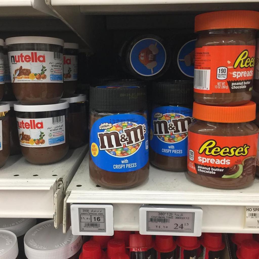 😱😱😱 Esse é pra quem gosta de Nutella, creme de avelã e m&m’s!❤️❤️❤️ m&m’s Spread With Crispy Pieces! 😋😋😋 Essa creme de Avelã com chocolate estampa no rótulo os confeitos mais famosos do mundo em sua versão crispy para representar o adicional e diferencial dessa mistura chocoliciosa! Pequenas bolinhas crocantes e coloridas estão presentes em todo o creme, criando algo incrível e diferente! Achamos muito delicioso! Nota 10/10! Compramos esse pote em Dubai por 16 reais, mas vocês podem encontrar aqui no Brasil em algumas lojas de importados, mas se não encontrar, calma! O envio desse produto para o Brasil é sazonal, então as vezes pode acabar e ficar umas semanas fora da prateleira! Mas ele sempre reaparece!