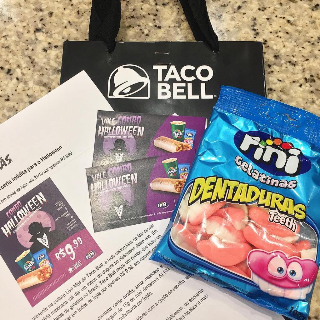 🧛♂️🧛♀️❤️🌯 Não acreditamos quando vimos mais uma sacola do Taco Bell na nossa porta! 😍 Mas era verdade! 😁❤️ O @tacobellbrasil está com uma parceria imperdível neste Halloween! Nada menos que a @finibrasil ! 💜+💙! O combo Halloween é composto pelo nosso burrito preferido + refrigerante e de quebra um pacotinho de Dentaduras da Fini! 😋😋😋 Saindo apenas R$9,99! 👌 Muito obrigado pelo presentinho pessoal! Acho que foi o combo mais perfeito da nossa vida: Taco Bell + Fini + Halloween! PERFEITO! 😍❤️ #ExperimentaIsso #TacoBell #Fini #Halloween #Burrito #Dentadura #Teeth #Refrigerante #Fanta #Guarana #Soda #delicia #novidade #novo #promocao #promoção #promo #combo #taco #tacos #comidamexicana #mexicanfood #food #2018 #recebidos