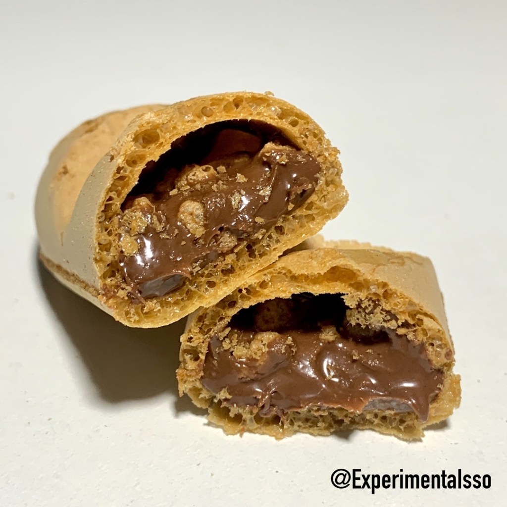 O snack é basicamente uma casquinha de Wafer recheada de Nutella. A casquinha é super crocante e fininha e o recheio é extremamente cremoso! Pode parecer simples, mas pra quem ama Nutella (como a gente) isso é mais que suficiente! 😅😋⠀