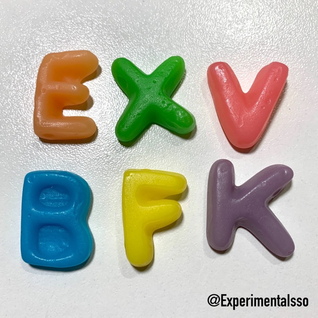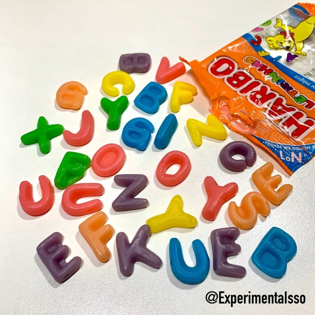 As Letrinhas tem uma textura muito macia, que fica entre os Ursinhos de Ouro e os Dentinhos. O sabor é muito gostoso e o aroma é bem intenso. Nesse pacote são 6 cores com sabores diferentes: amarelo (sabor abacaxi), laranja (sabor tangerina), azul (sabor framboesa), vermelho (sabor morango), roxo (sabor uva) e verde (sabor maçã verde)⠀