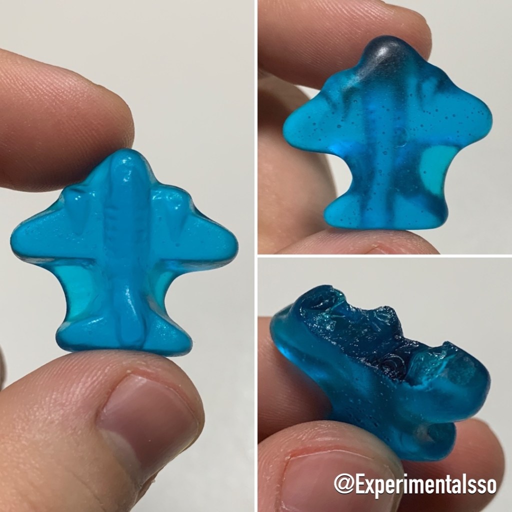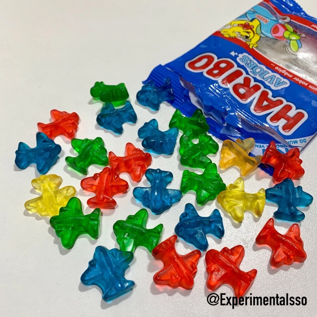 Os aviões tem a mesma qualidade e textura dos Ursinhos de Ouro! São 5 cores com sabores diferentes: amarelo (sabor limão), laranja (sabor laranja), verde (sabor maçã verde), azul (sabor framboesa), vermelho (sabor morango). O formato é o mesmo para todas as cores e parece muito com os aviõezinhos que a Haribo produziu para a Azul durante algum tempo.⠀