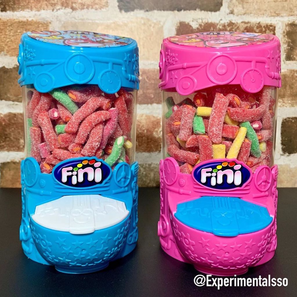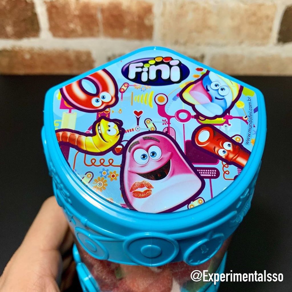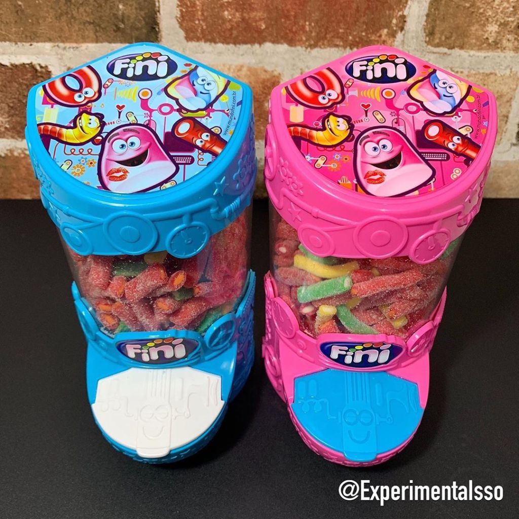 Esses baleiros são produtos exclusivos da Fini store! (A loja digital da Fini) Compramos junto com 2 pacotes de “Mini Tubes Mix” de 500g que couberam certinho nos baleiros!