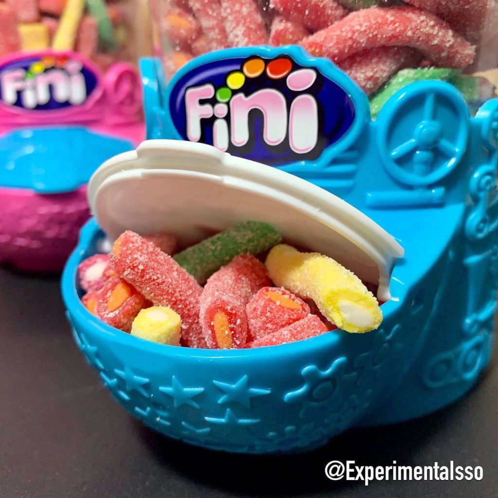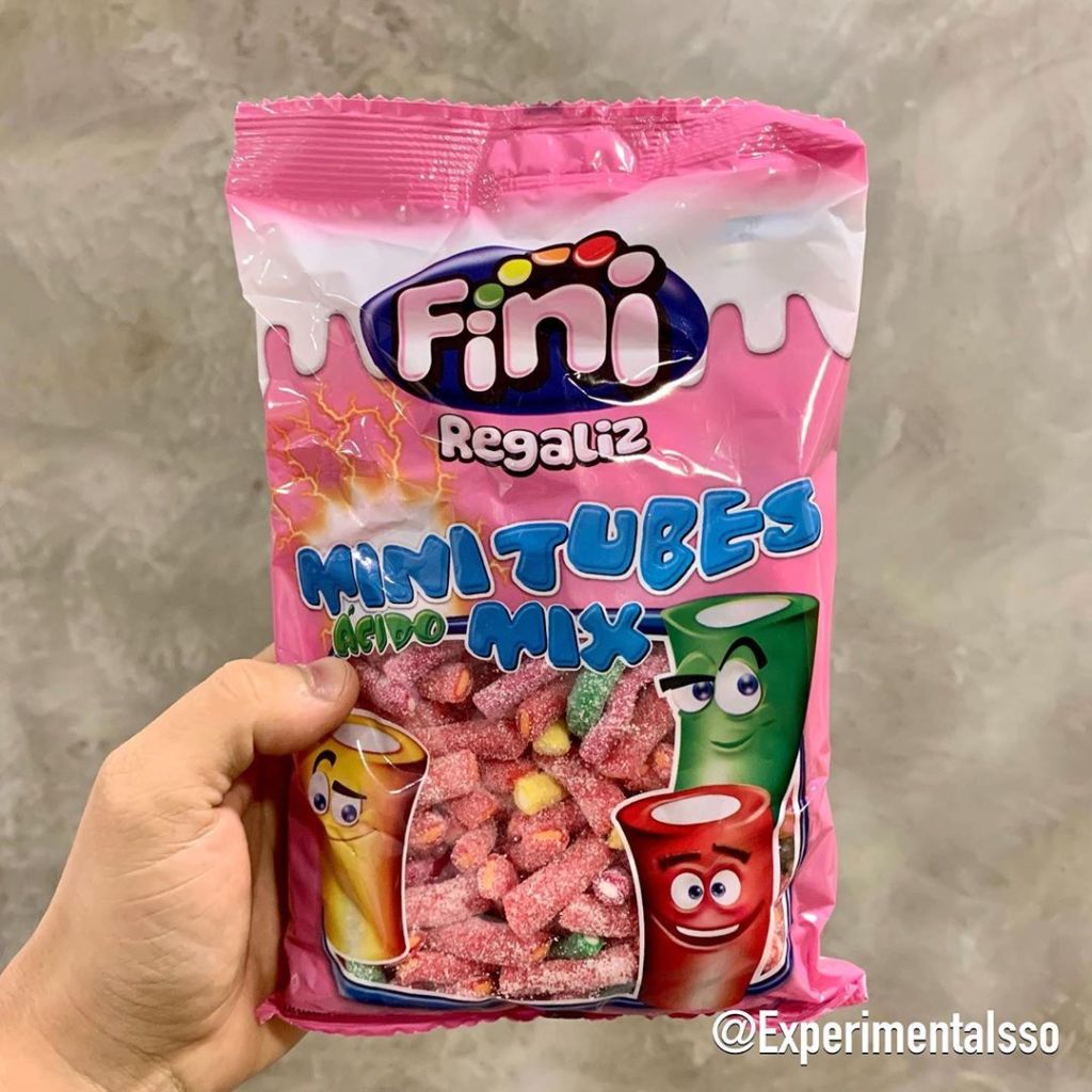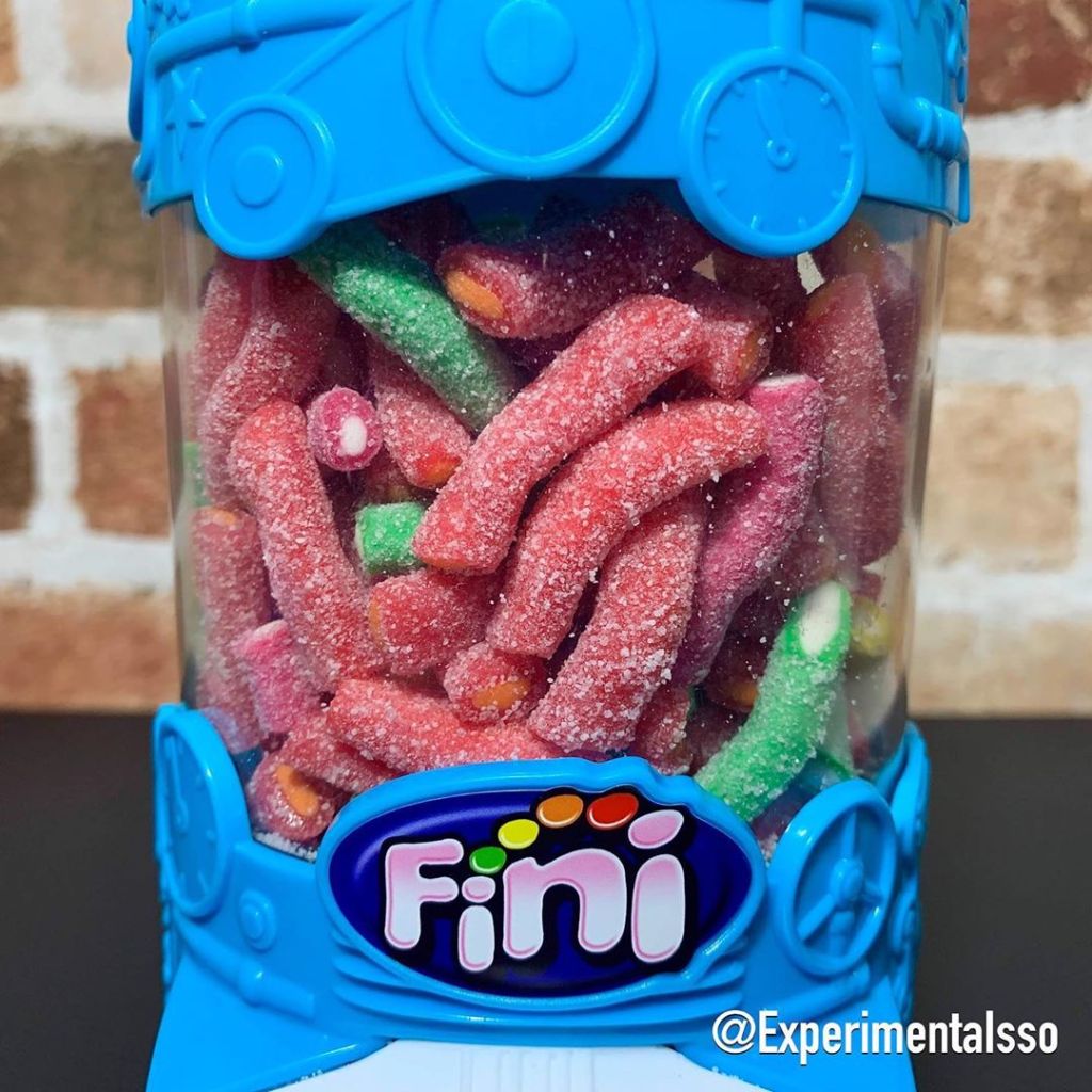 Esses baleiros são produtos exclusivos da Fini store! (A loja digital da Fini) Compramos junto com 2 pacotes de “Mini Tubes Mix” de 500g que couberam certinho nos baleiros!