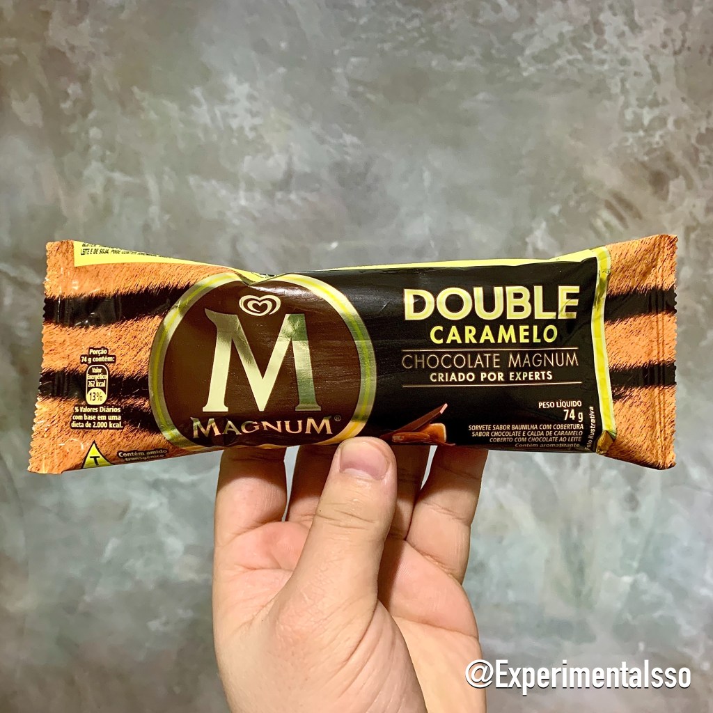 🇧🇷Magnum Double Caramelo 😍😍😍 Concordo com o que diz na embalagem: “Criado por experts”! 😅 Esse Magnum ficou incrível! Além do clássico sorvete de baunilha no centro, ele tem uma camada de cobertura de chocolate, seguida por uma camada de caramelo cremoso e mais uma camada de cobertura de chocolate ao leite! 👌👌👌