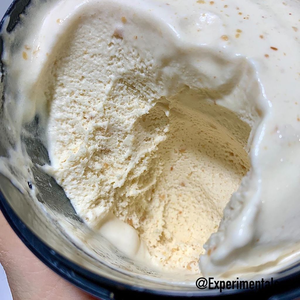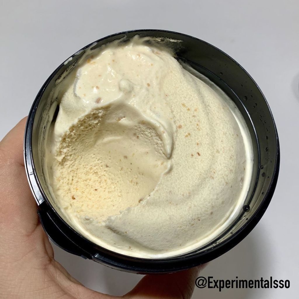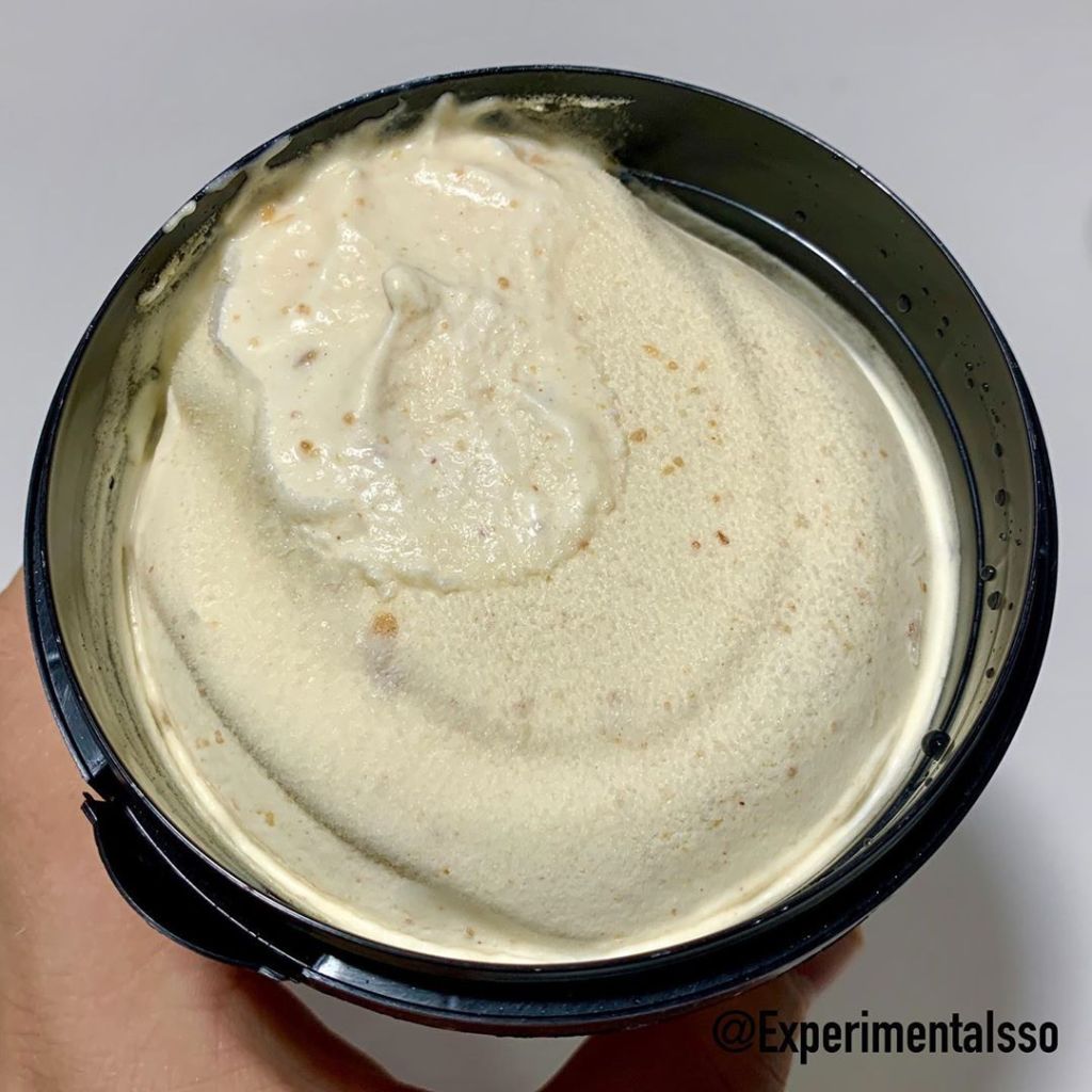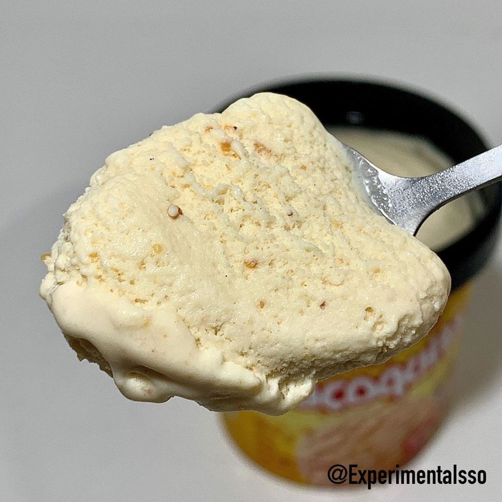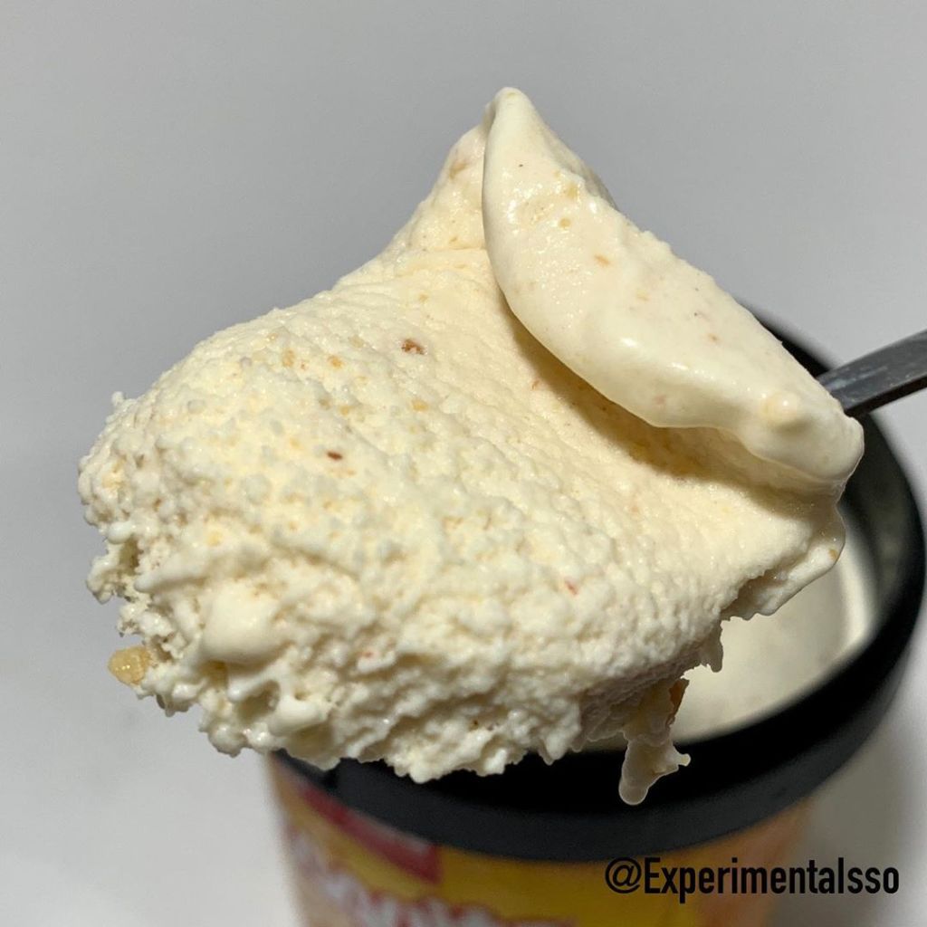 O sorvete tem sabor de amendoim com pedacinhos de paçoca misturados na massa.