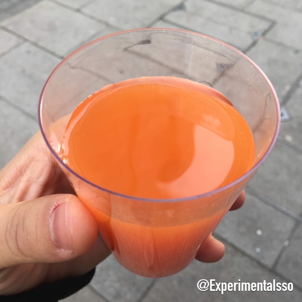 Leve gosto de pêssego e manga, os dois sabores mais perceptíveis, e é bem doce, mais do que os outros.