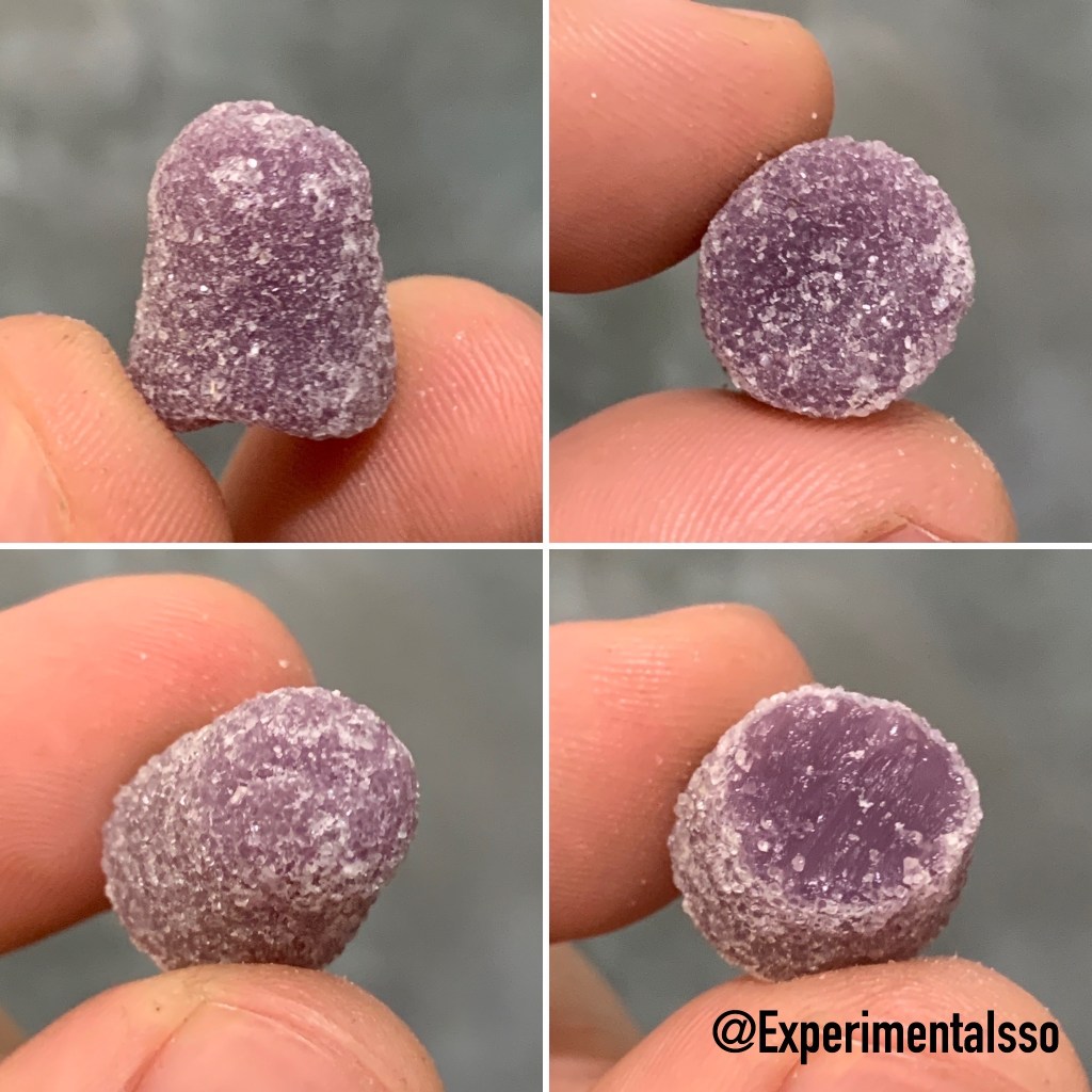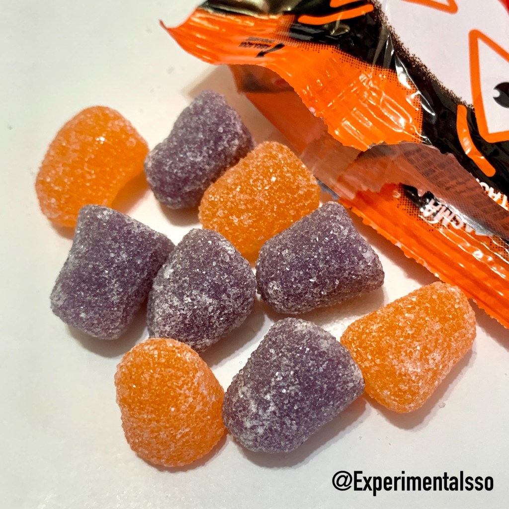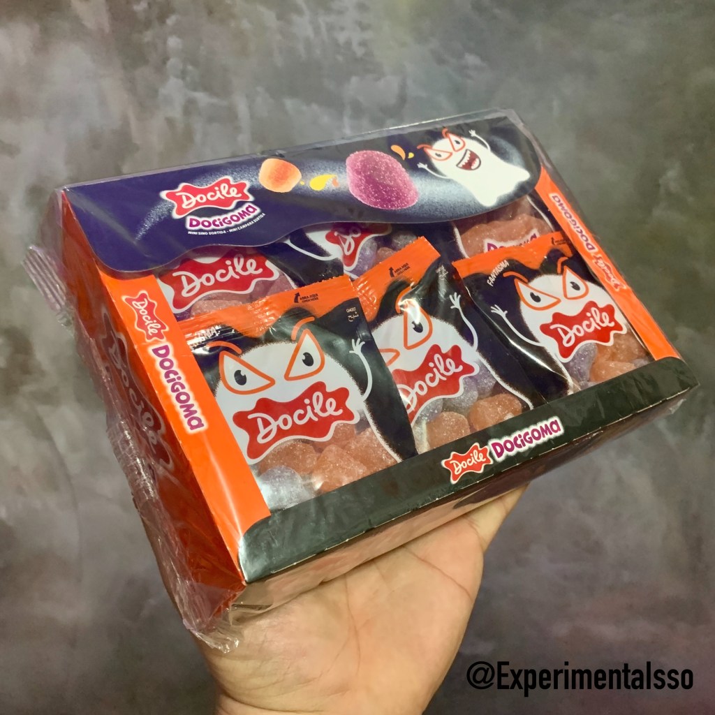 A Docigoma vem em pacotinhos de 10g, com 2 sabores nas cores clássicas do Halloween: a balinha laranja tem sabor de tangerina e a balinha roxa tem sabor de uva. Essa balinha é perfeita pra quem gosta de distribuir doces no dia 31 e pra quem gosta de comer pequenas porções de cada vez. A caixa que compramos veio com 25 pacotinhos de 10g.