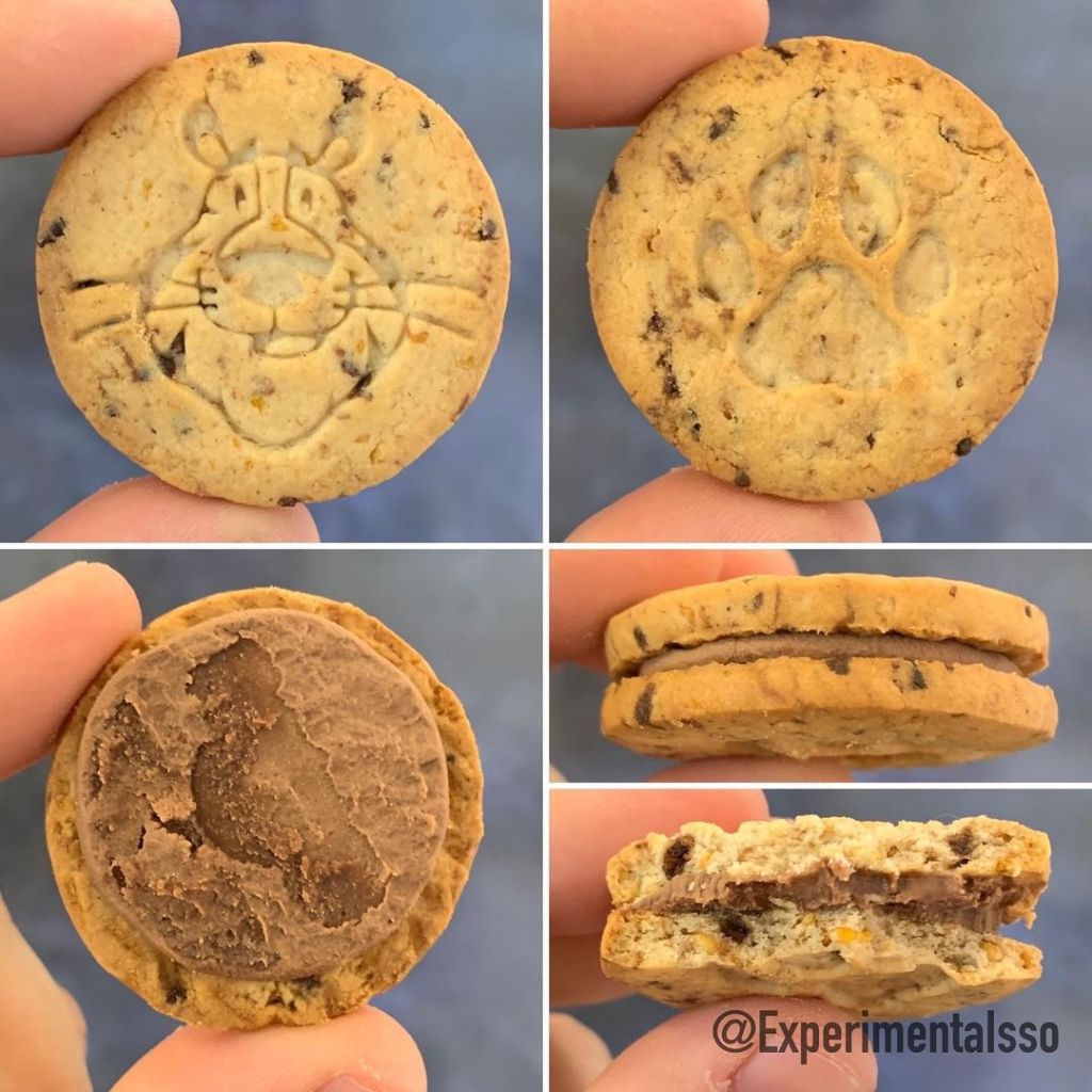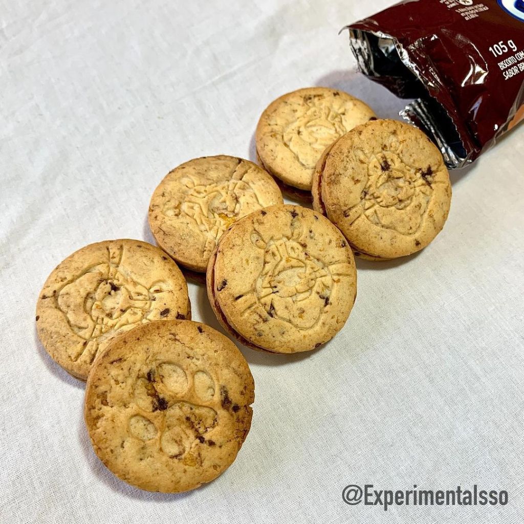 O sabor Brigadeiro tem biscoito de baunilha com Sucrilhos e pedacinhos de chocolate granulado. O recheio é sabor brigadeiro.