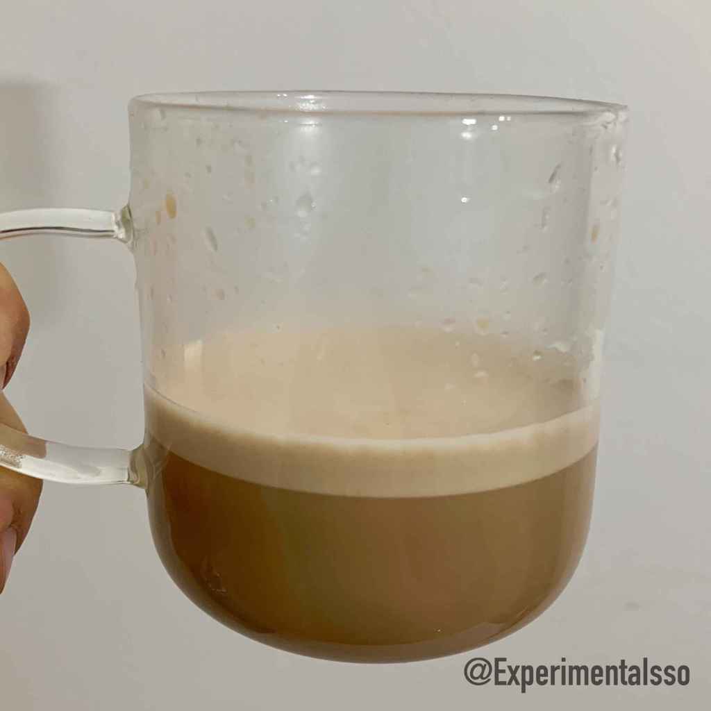 Essa bebida tem um sabor forte, como se a proporção café X leite estivesse errada. A bebida também não é muito doce, o que deixa o sabor do “café” ainda mais forte. Apesar de ter criado uma boa espuma na parte superior, a bebida é bem fininha, sem muita cremosidade.