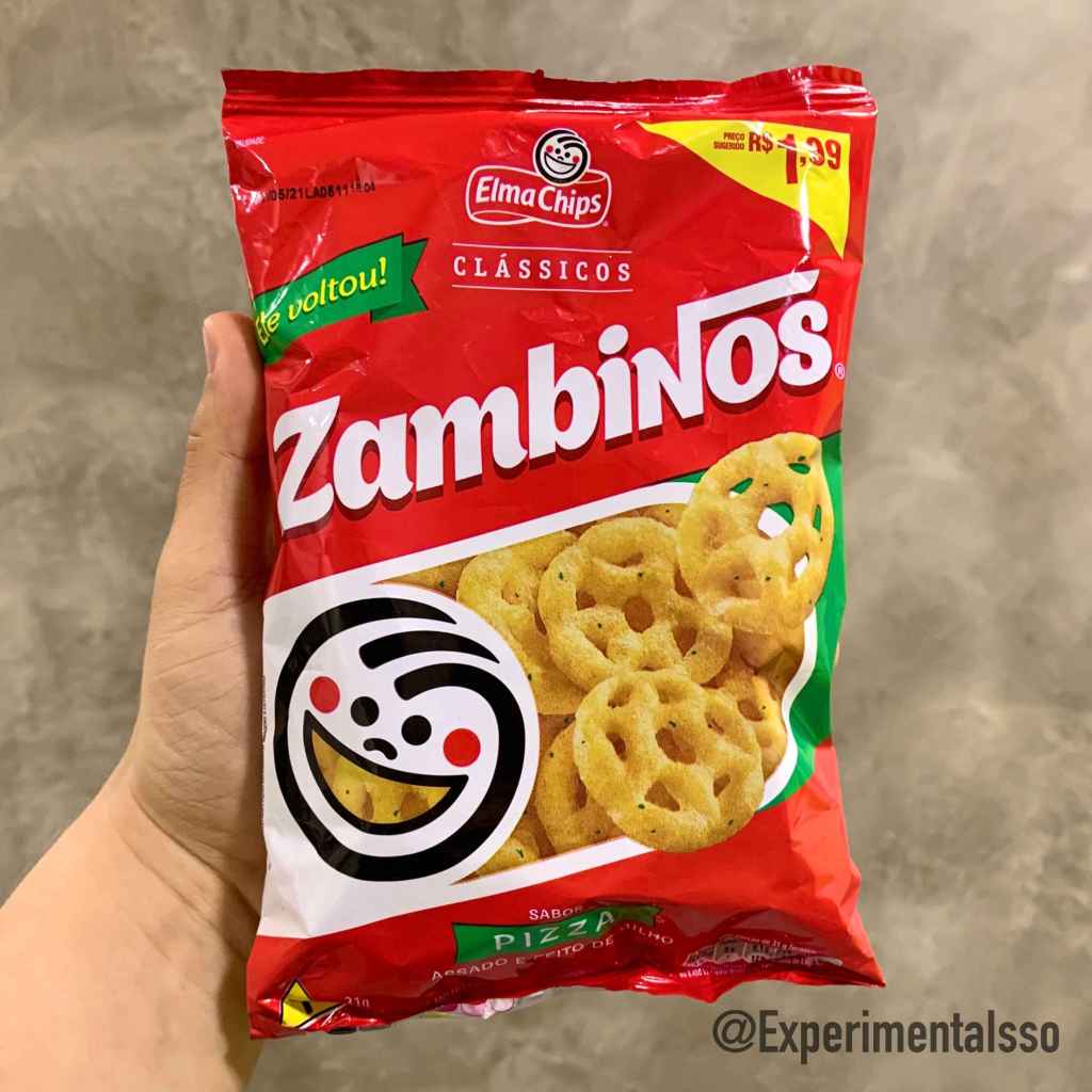 🇧🇷Zambinos voltou! 😍.Um dos retornos mais aguardados da Elma Chips! Depois de muitos pedidos finalmente trouxeram os Zambinos de volta!.Esse salgadinho com sabor de pizza e com o formato “roda de carroça” foi lançado nos anos 80 e retirado do mercado uma década depois. Apesar de já ter voltado nos anos 2000, foi descontinuado logo em seguida. Quanto tempo será que ele sobreviverá dessa vez?