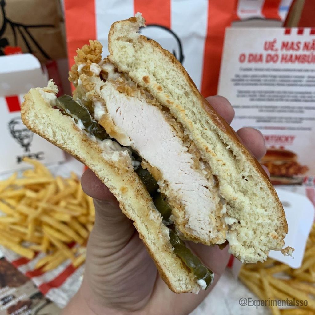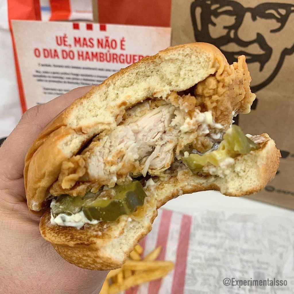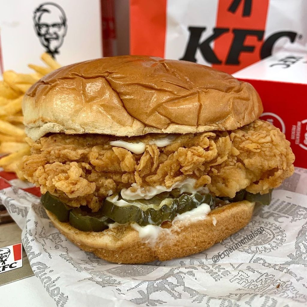 O Kentucky Chicken Sandwich tem frango crocante e suculento, pão brioche tostadinho na manteiga, picles e maionese especial! 👌
