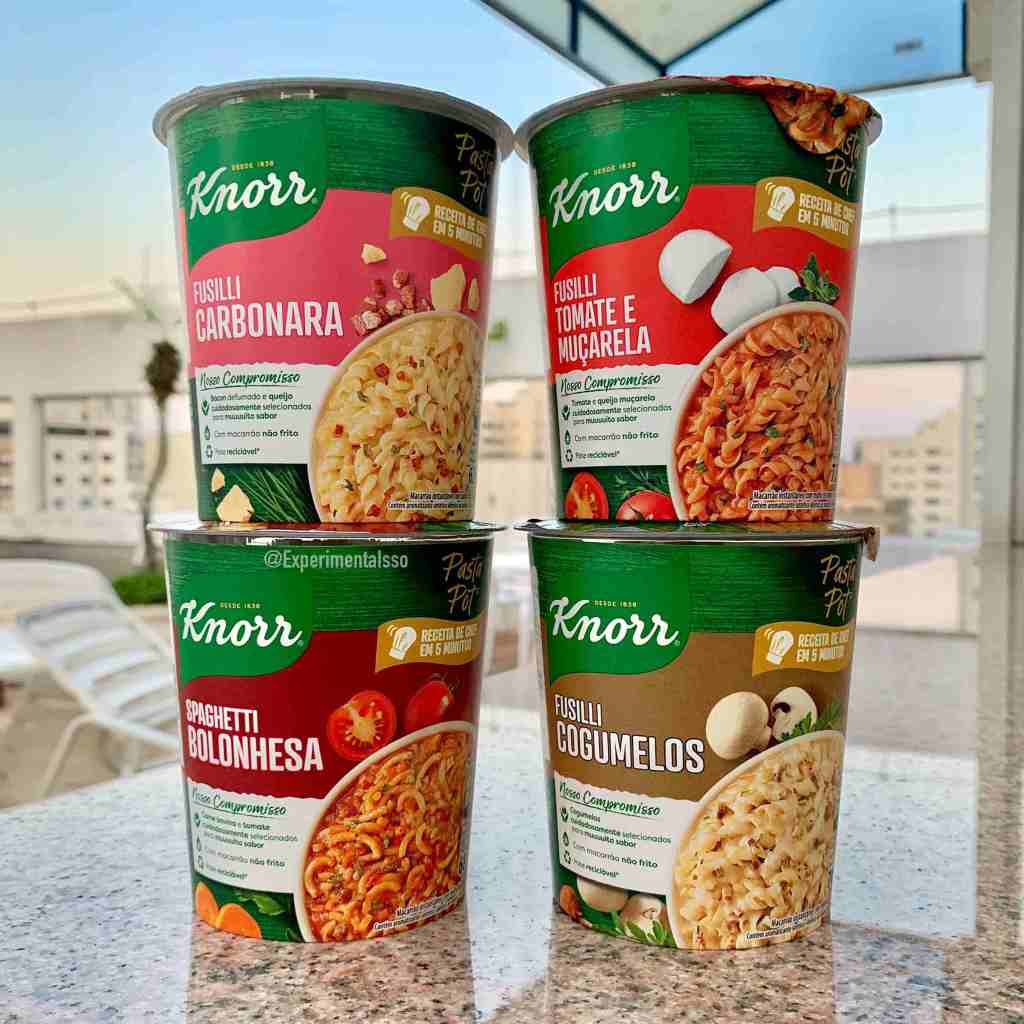 Pra quem não conhece a Pasta Pot é tipo um Cup Noodles mundialmente vendido pela Knorr. Ano passado foram lançados 4 sabores oficialmente aqui no Brasil. Carbonara, bolonhesa, tomate e muçarela e cogumelos. Os 4 sabores tem preparo de aproximadamente 5 min com agua quente direto na embalagem.