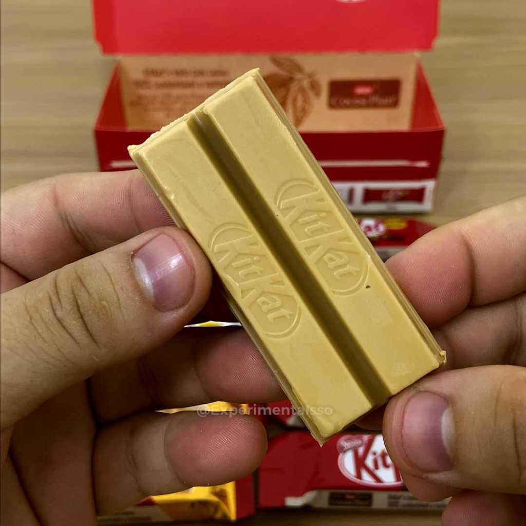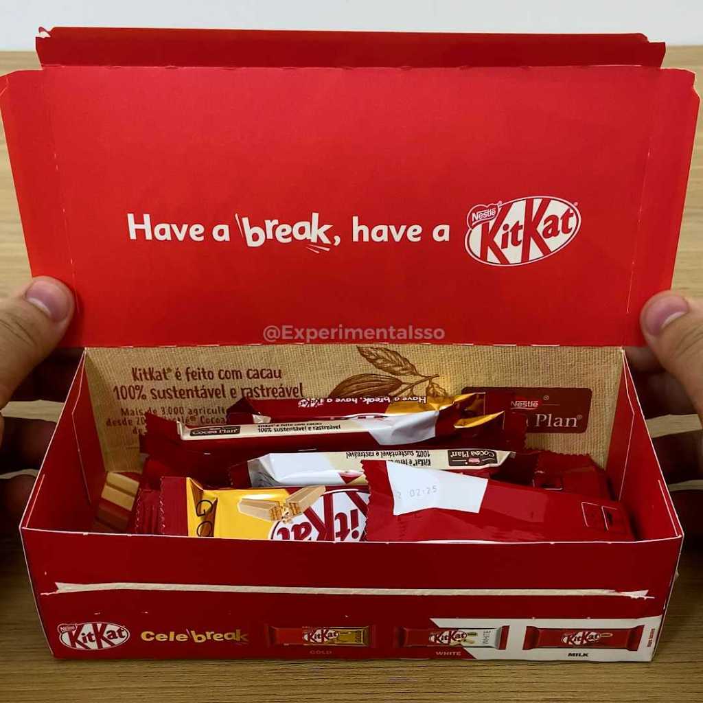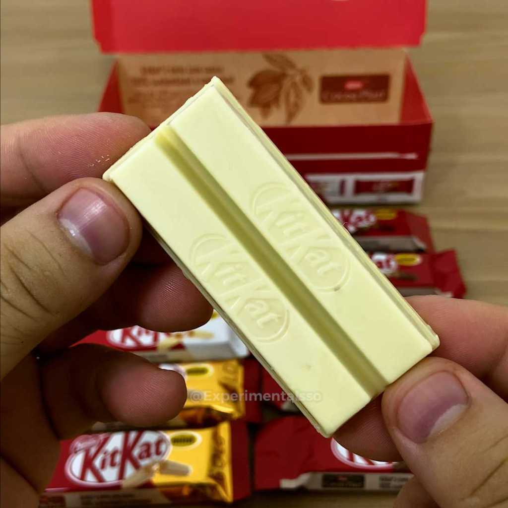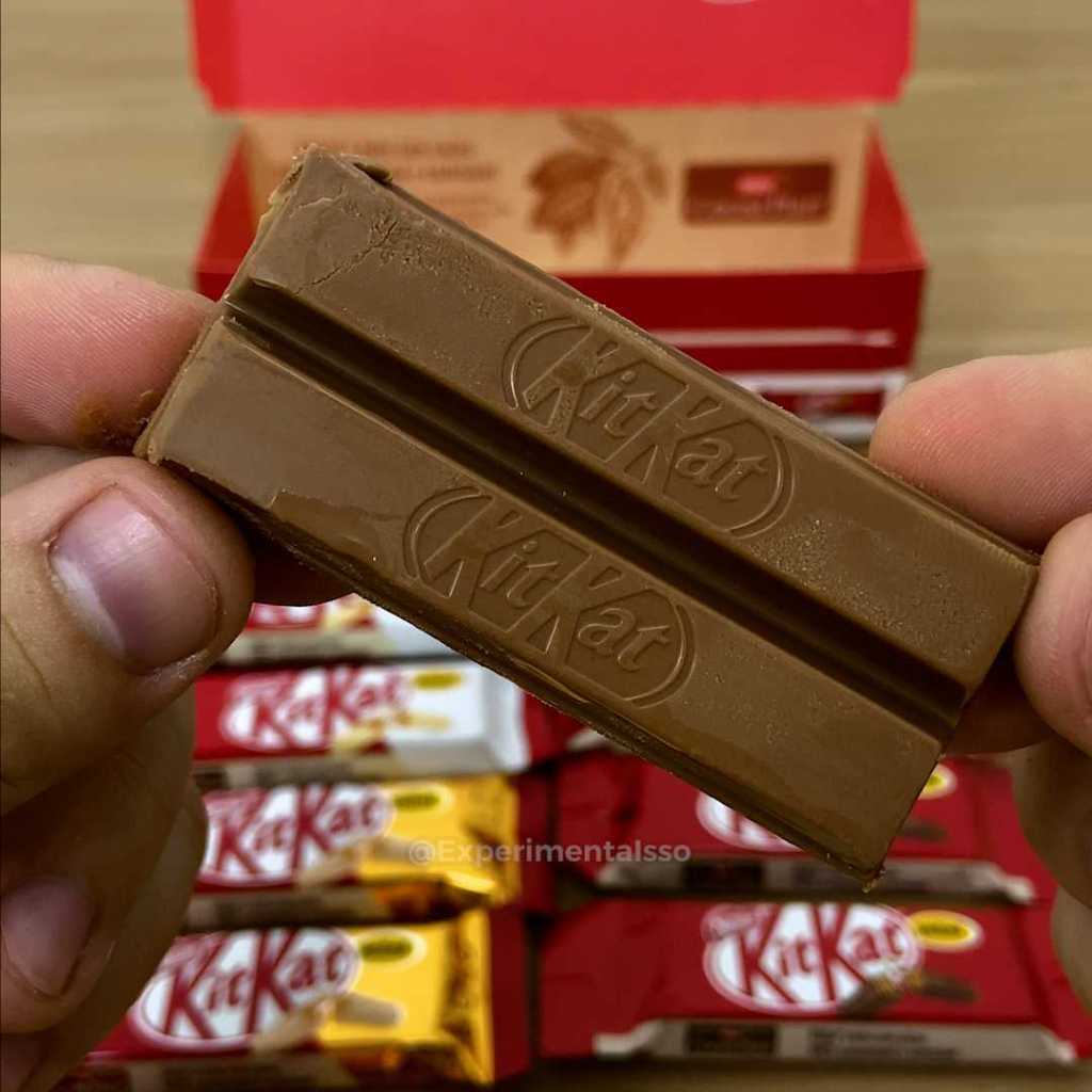 Apesar de serem do tamanho mini e terem apenas 2 fingers (2 pedaços), os KitKats dessa caixa tem a mesma textura, crocancia e qualidade de um KitKat de tamanho tradicional.