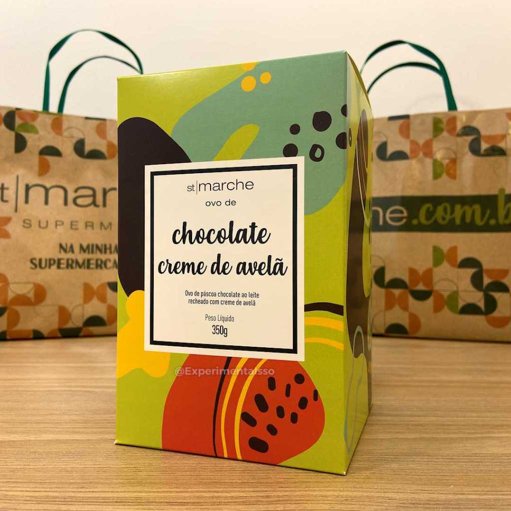 Ele é feito com um chocolate ao leite muito gostoso, super cremoso, e o creme de avelã do recheio TEM GOSTO DE CREME DE AVELÃ! E ainda tem esses bombons maciços de chocolate ao leite que vieram dentro do ovo, que sinceramente nem estava esperando.