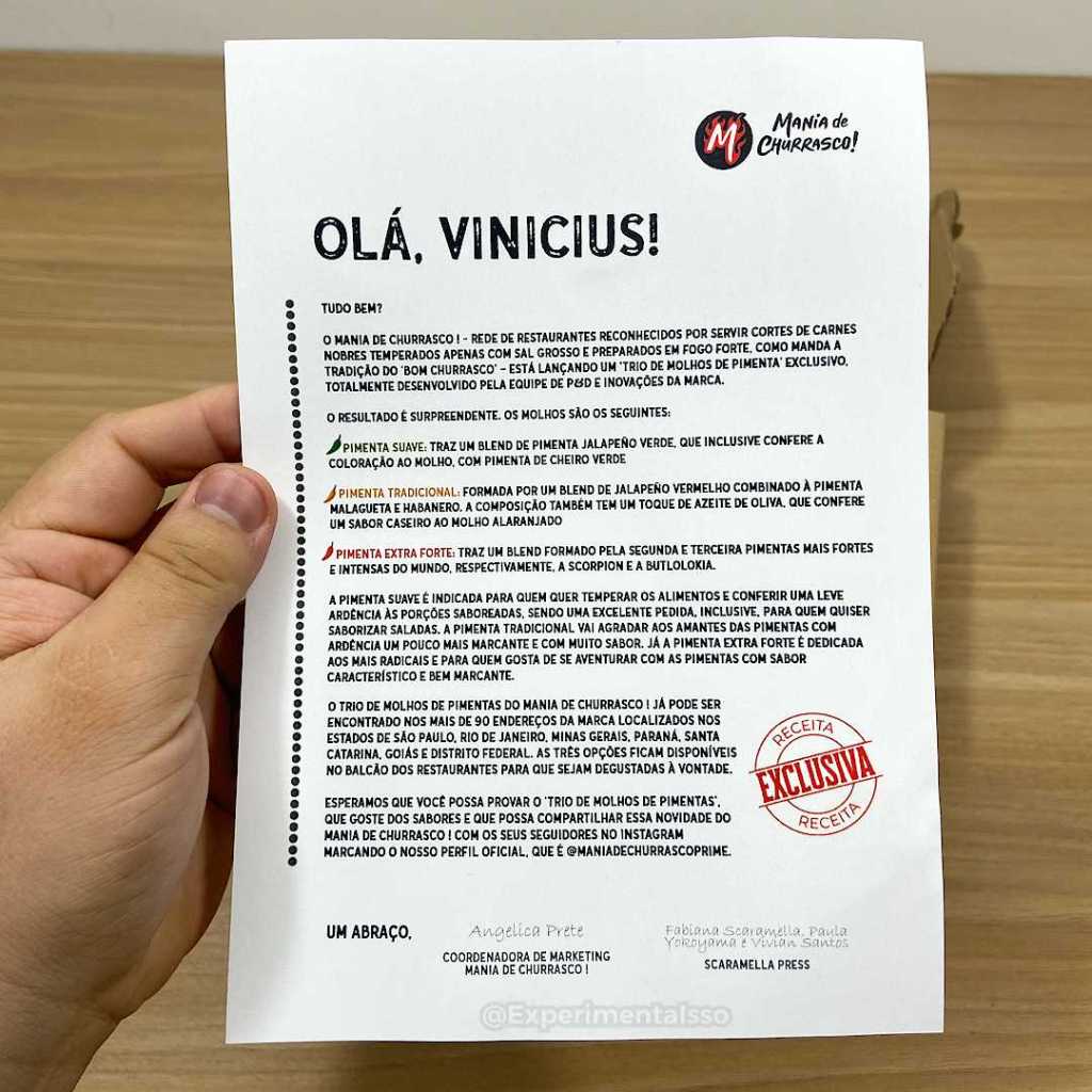 O Mania de Churrasco! – rede de restaurantes reconhecidos por servir cortes de carnes nobres temperados apenas com sal grosso e preparados em fogo forte, como manda a tradição do bom churrasco – está lançando um trio de molhos de pimenta exclusivo. Totalmente desenvolvido pela equipe de P&D e inovações da marca