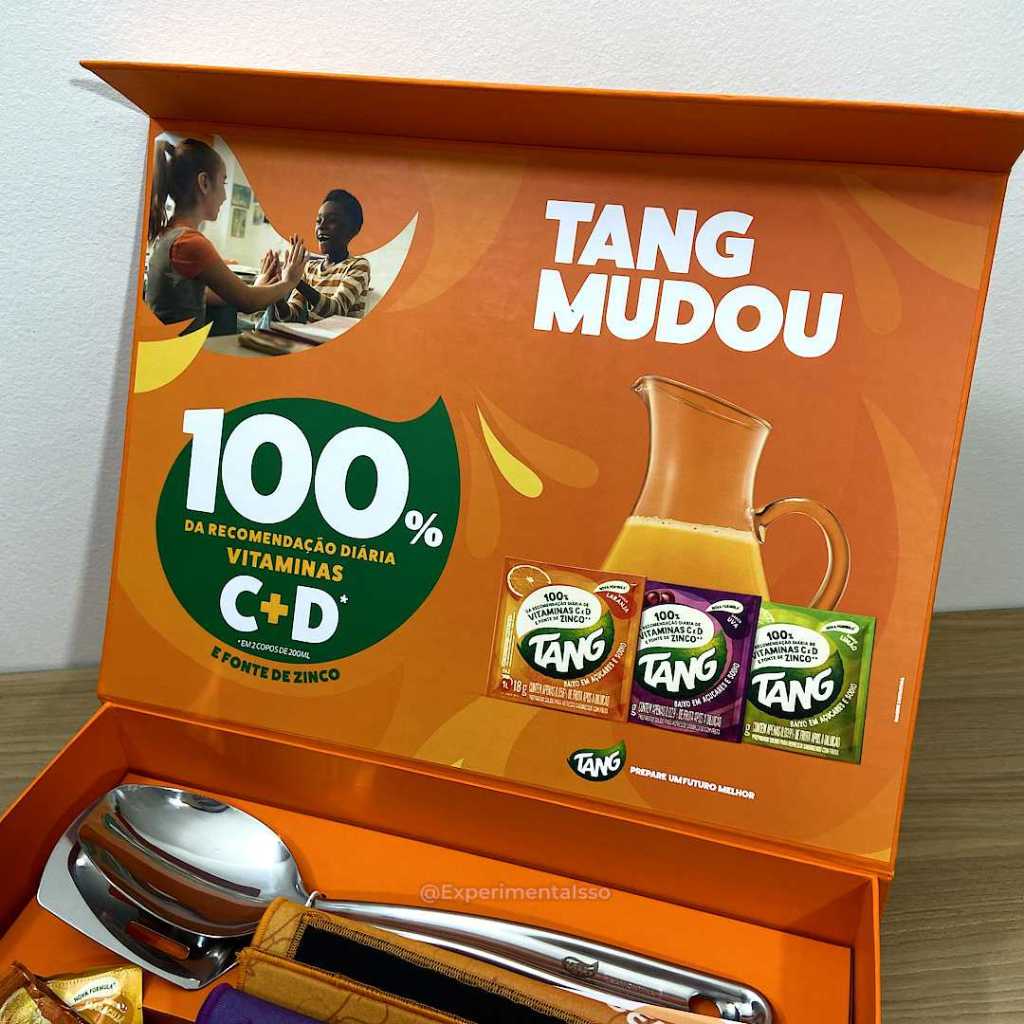 O novo Tang oferece 100% da recomendação diária de vitaminas C e D em apenas 2 copos de 200 ml e é fonte de zinco. Um produto com mais nutrientes que, com uma alimentação balanceada, contribui para o desenvolvimento saudável das crianças.