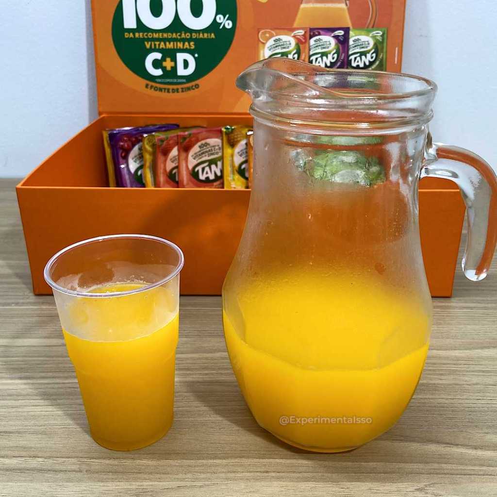 E o rendimento de 1 litro também não muda. Ah, e você sabia que Tang é baixo em açúcares? Um copo contém aproximadamente ½ colher de chá de açúcar, 10% da quantidade de açúcar de um refrigerante convencional e 21% da quantidade de um suco pronto do tipo néctar.