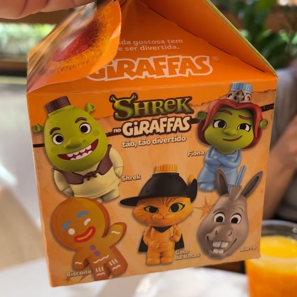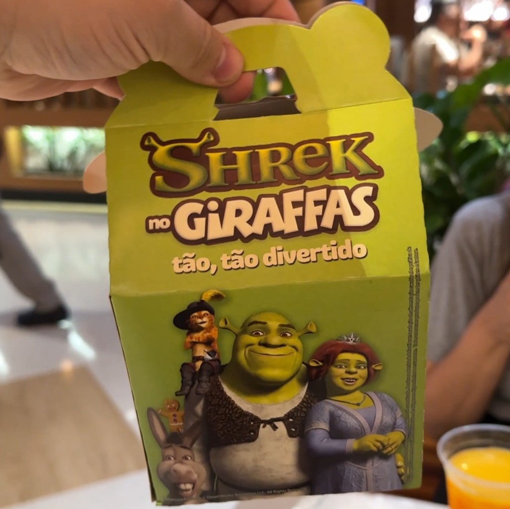 Além dos brindes, o Giraffas lançou um cardápio temático com embalagens personalizadas. O sabor clássico da rede agora vem acompanhado de toda a magia do universo de Shrek, tornando a experiência de comer ainda mais divertida e especial.